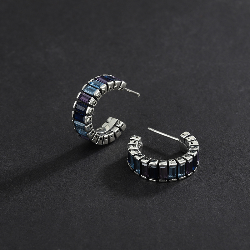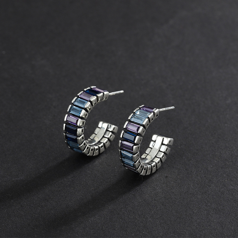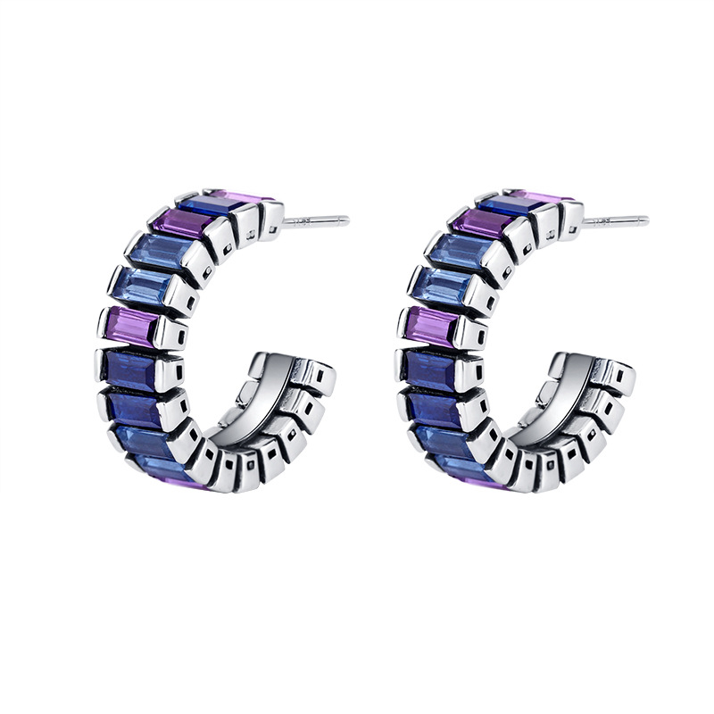 Product: Wholesale 925 Sterling Silver Ladder Blue Zirconia Hoop Stud Earring 40200235.