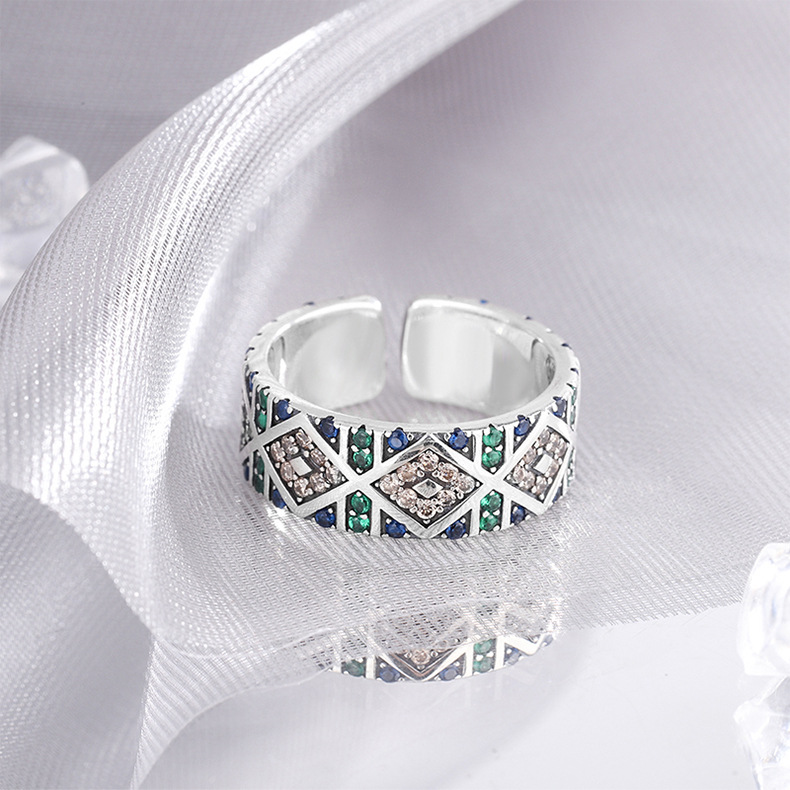 Product: Wholesale 925 Sterling Silver Luxury Geometric Zirconia Open Rings 70400039.