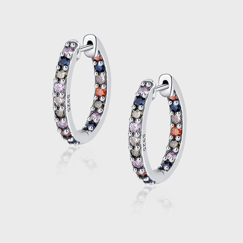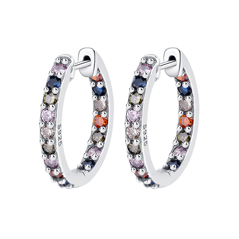 Product: Wholesale 925 Sterling Silver Luxury Rainbow Zirconia Huggie Hoop Earrings 60200087.