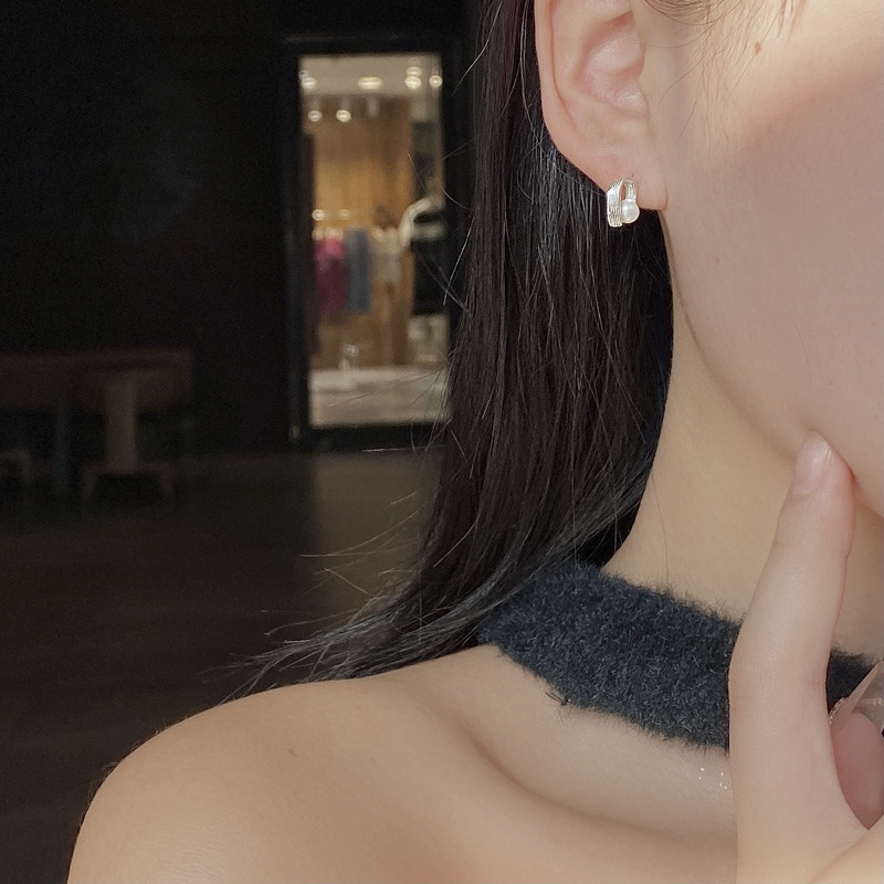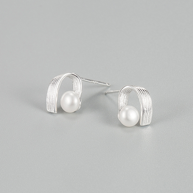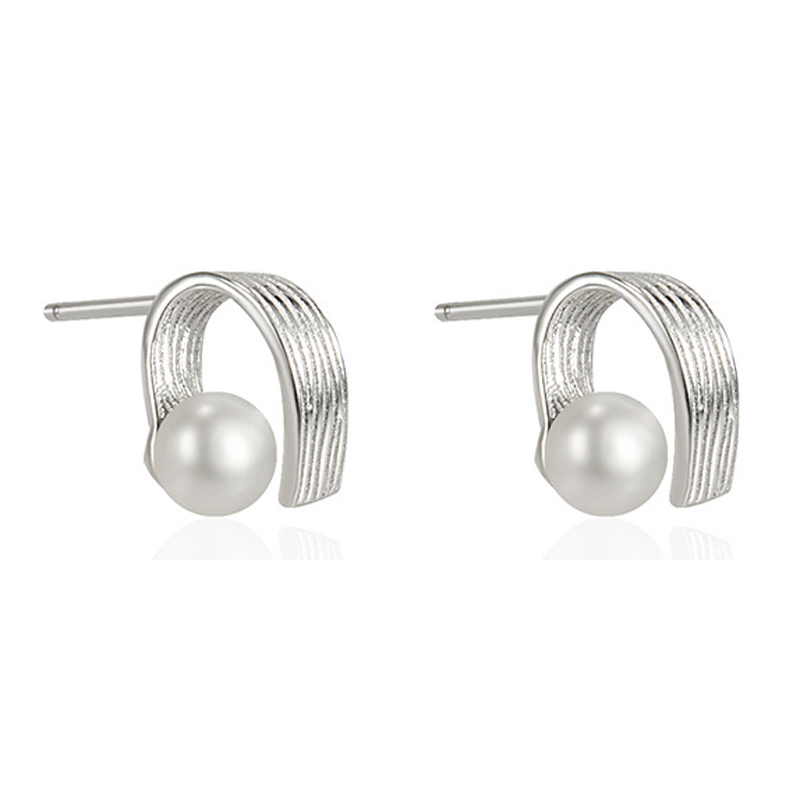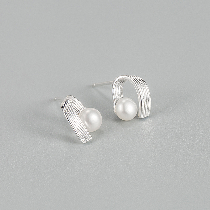 Product: Wholesale 925 Sterling Silver Minimalist Wires Pearl Stud Earring 40500008.