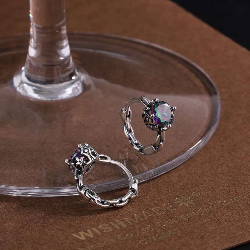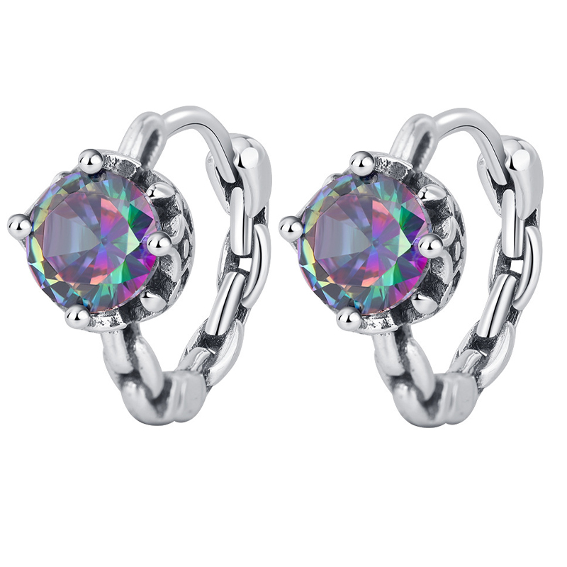 Product: Wholesale 925 Sterling Silver Mystic Rainbow Zirconia Huggie Hoop Earrings 60200097.