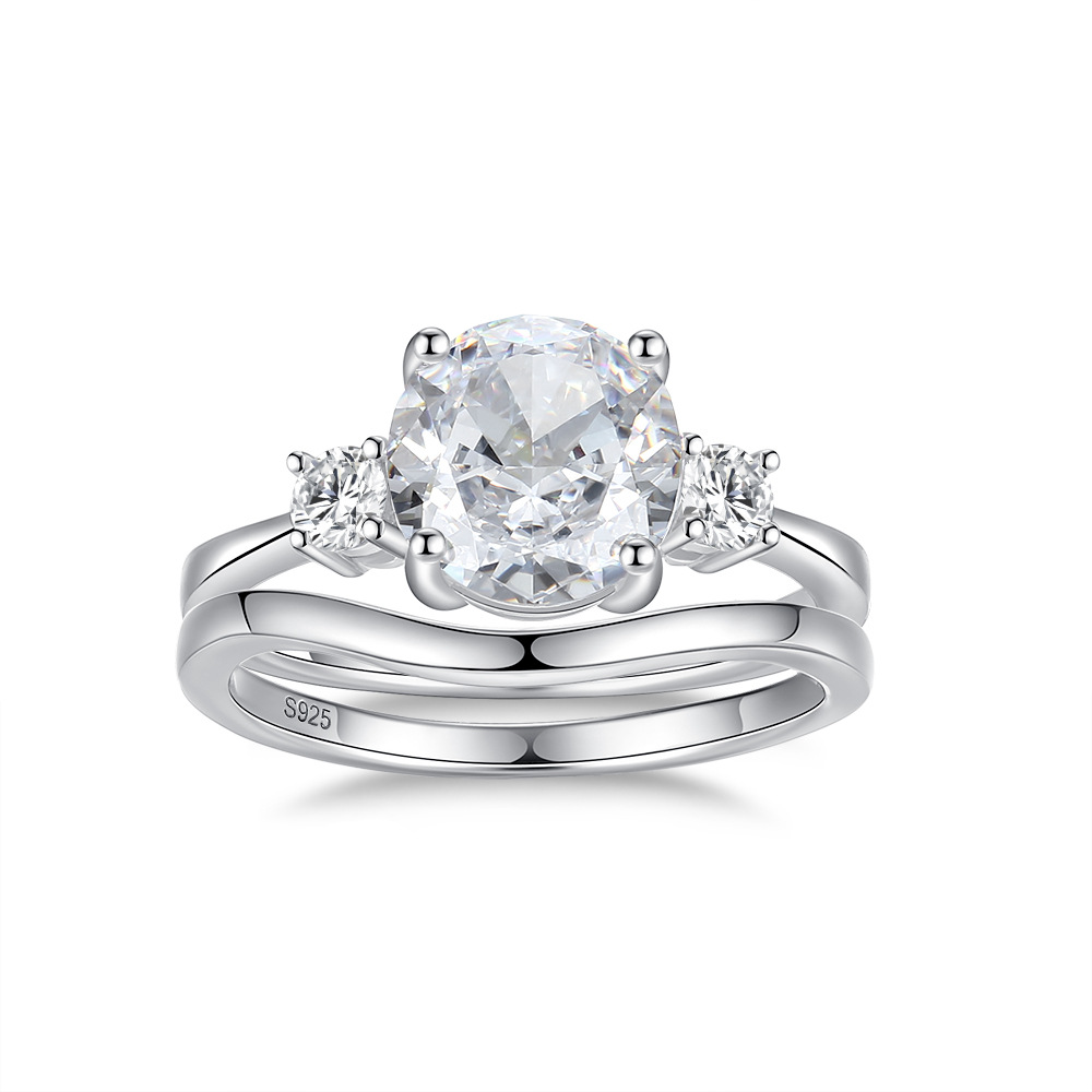 Product: Wholesale 925 Sterling Silver Oval High Carbon Diamond Stack Ring 70200259.