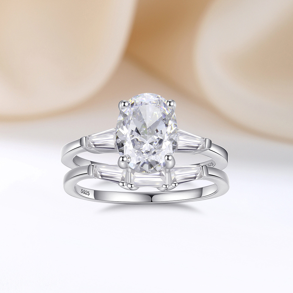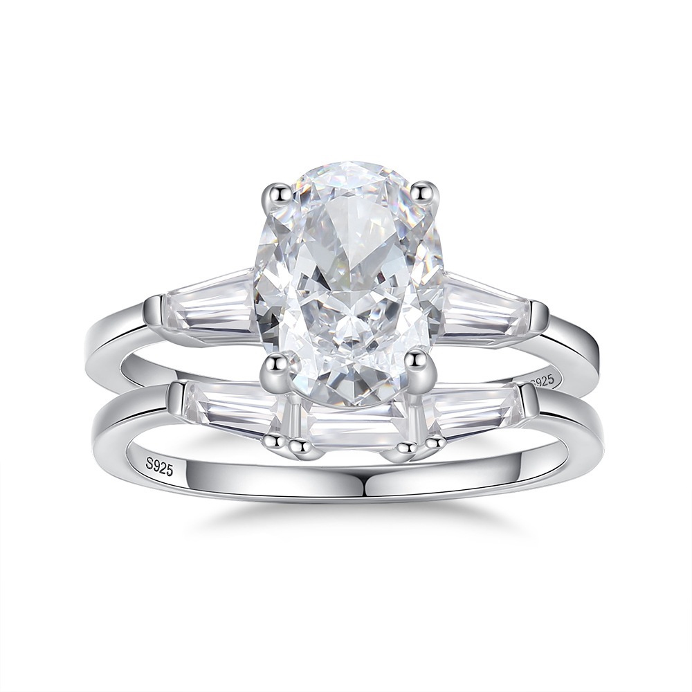 Product: Wholesale 925 Sterling Silver Oval High Carbon Diamond Stack Ring 70200276.
