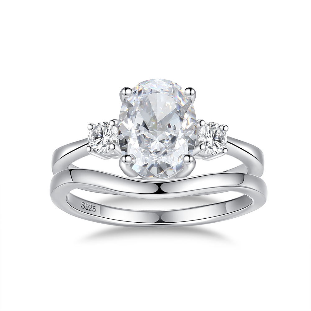 Product: Wholesale 925 Sterling Silver Oval High Carbon Diamond Stack Ring 70200277.