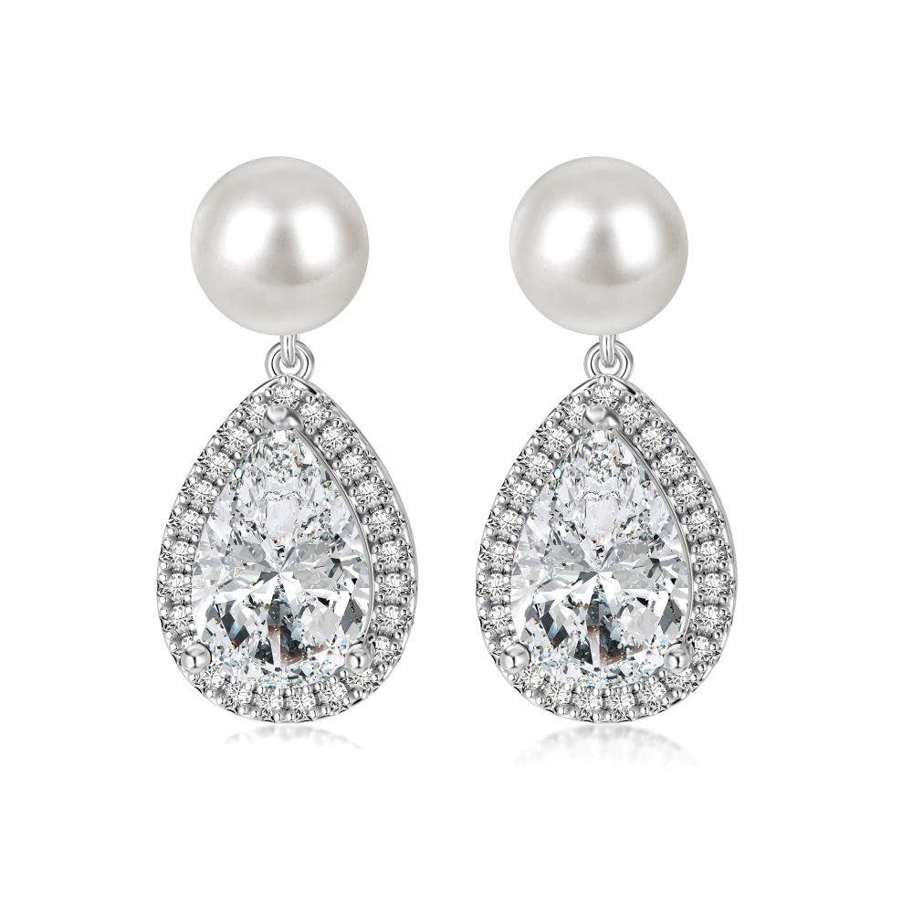 Product: Wholesale 925 Sterling Silver Pearl Waterdrop Zirconia Stud Earring 40200442.