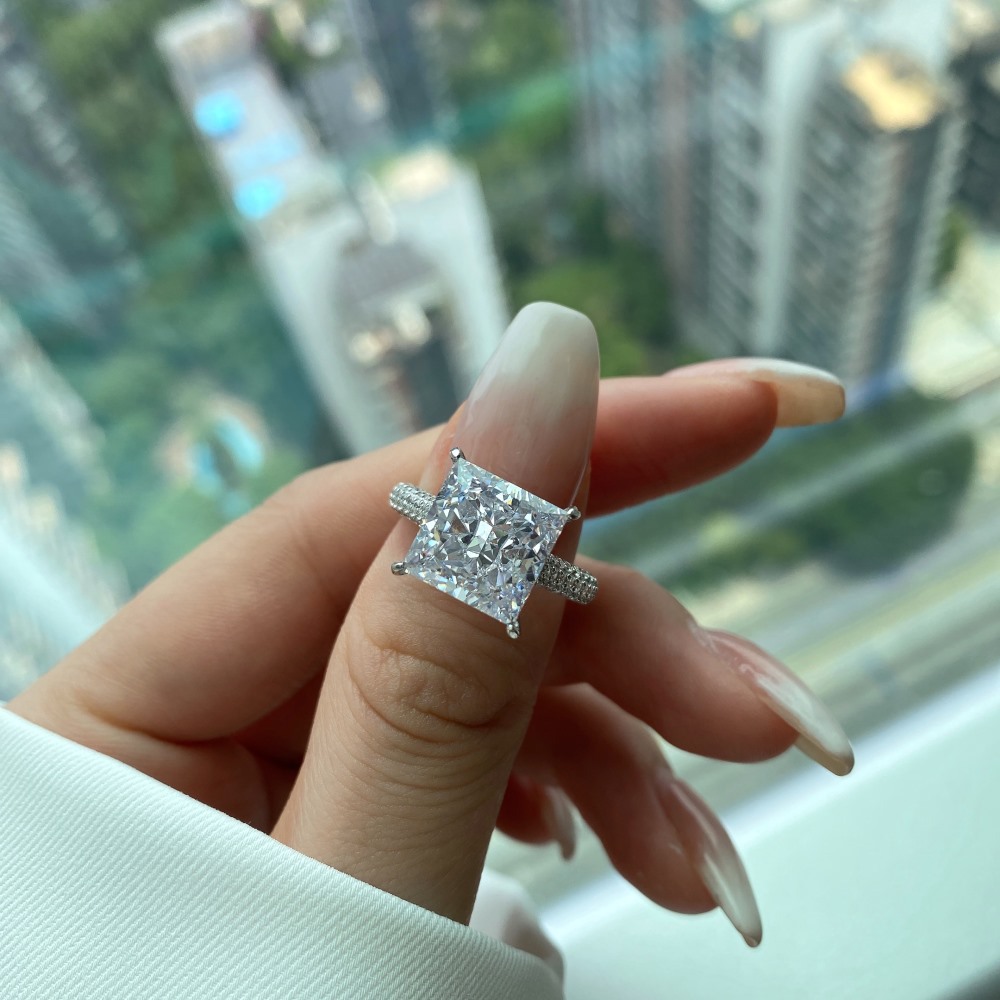 Main Stone: 8A Cubic Zirconia, High Carbon Diamond Stone 10*10mm.