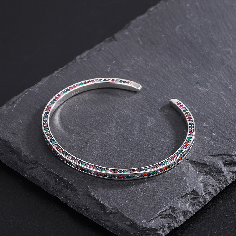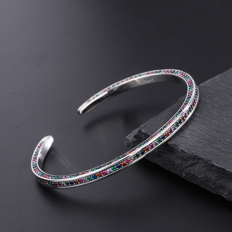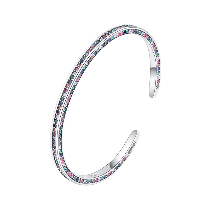 Product: Wholesale 925 Sterling Silver Rainbow 3 Sides Zirconia Cuff Bangles 100200002.