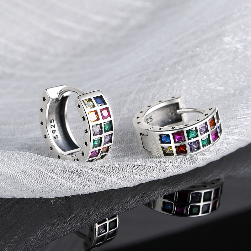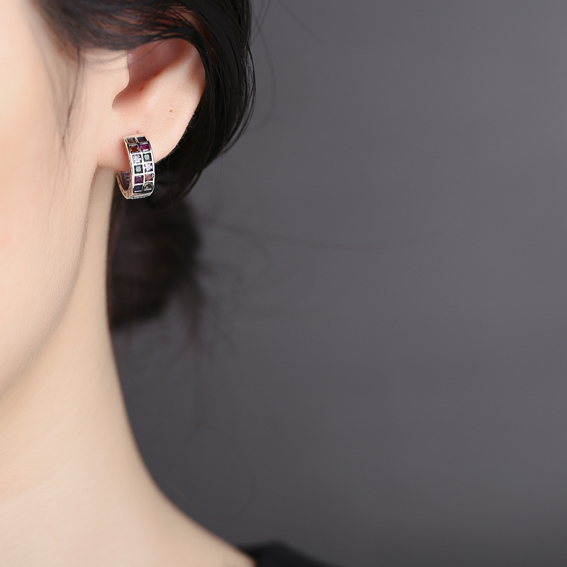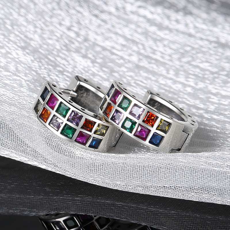 Product: Wholesale 925 Sterling Silver Rainbow Square Zirconia Hoop Earrings 60200113.