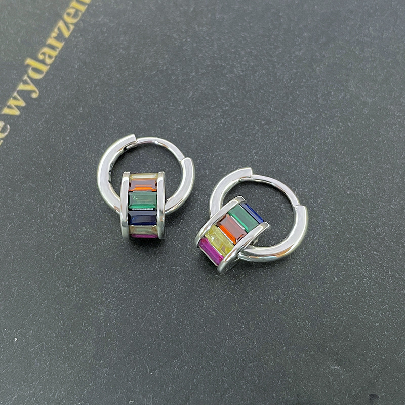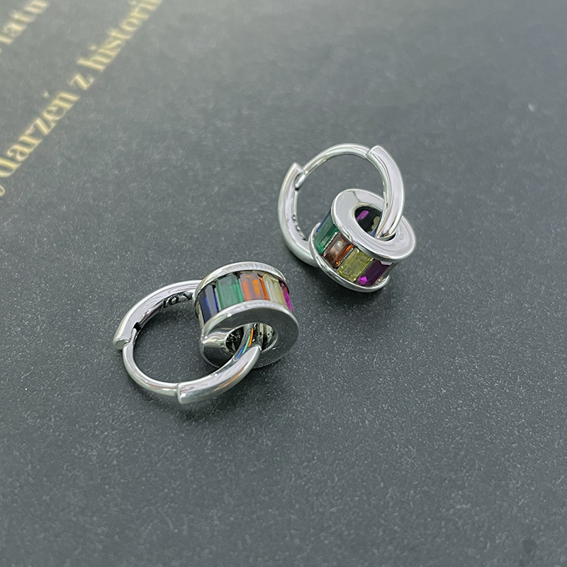 Product: Wholesale 925 Sterling Silver Rainbow Zirconia Small Waist Hoop Earrings 60200100.