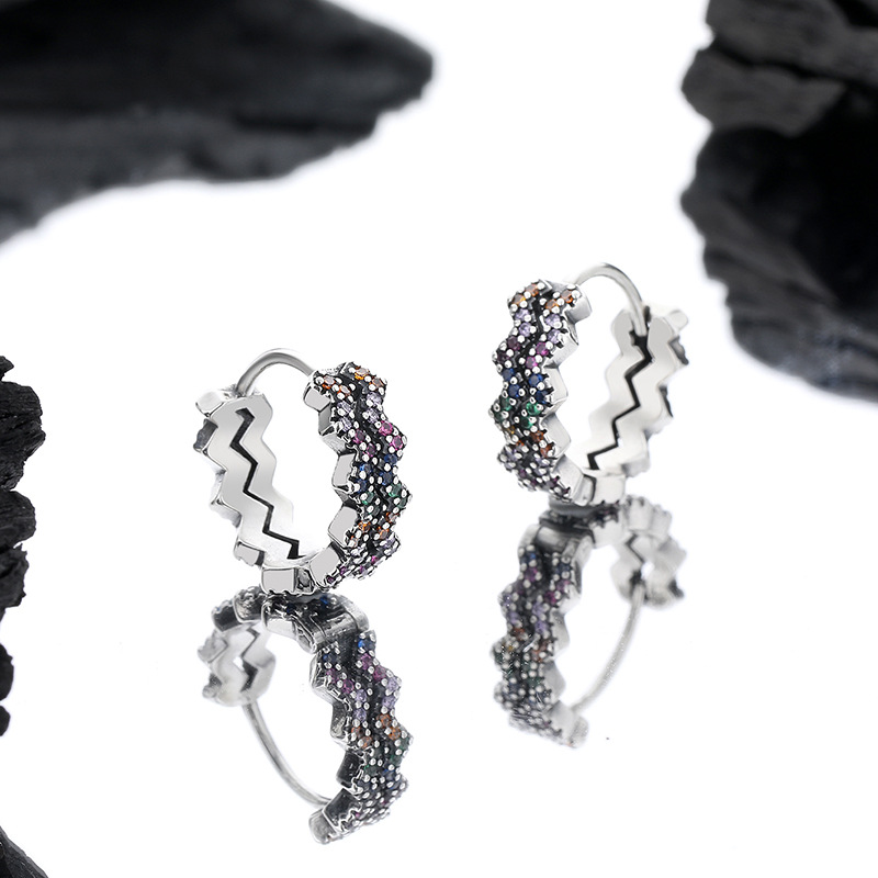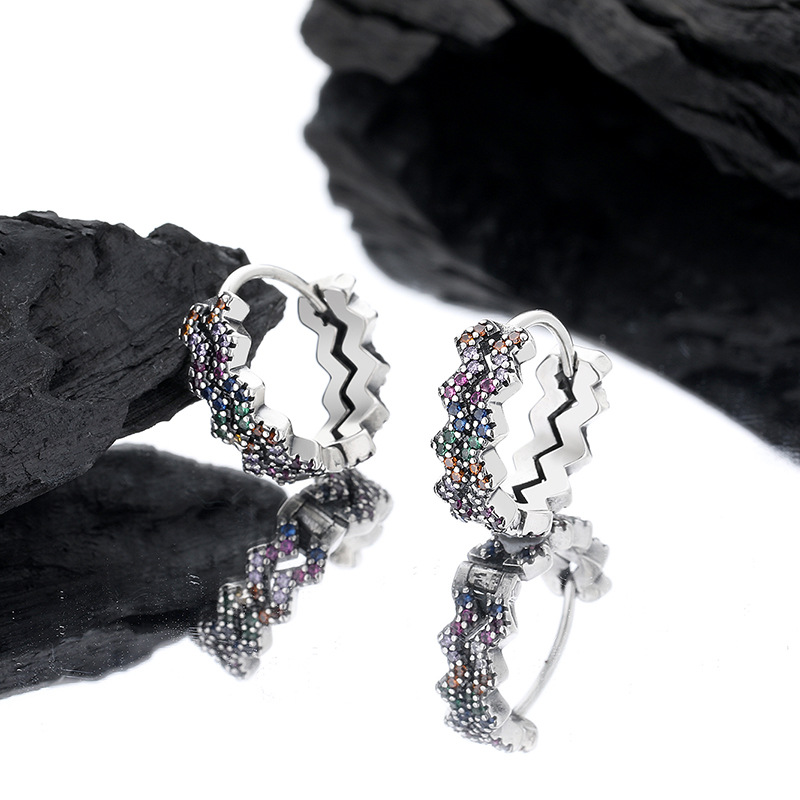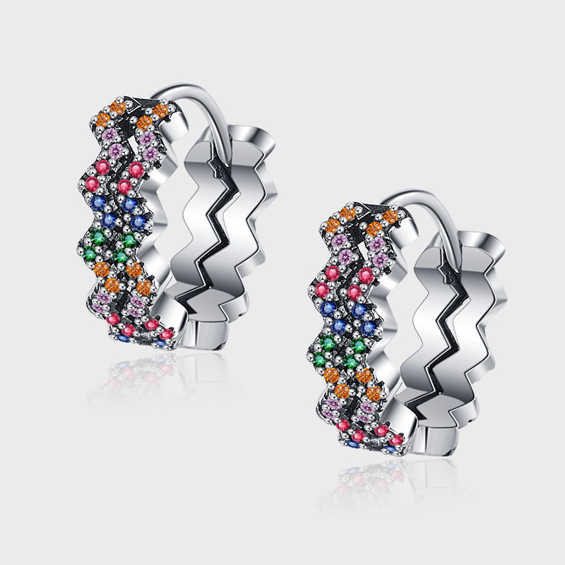 Product: Wholesale 925 Sterling Silver Rainbow Zirconia Waves Hoop Earrings 60200108.