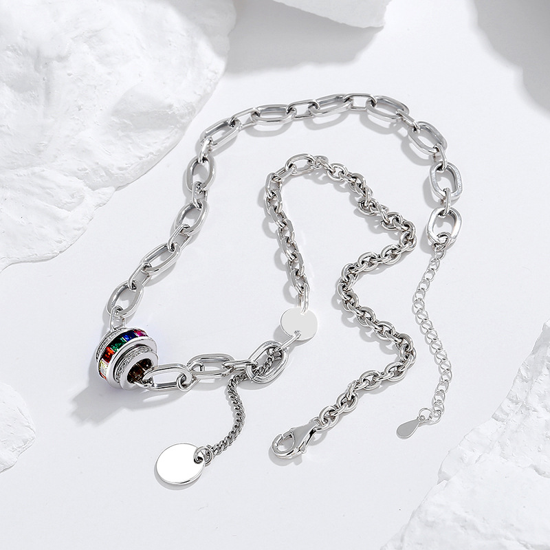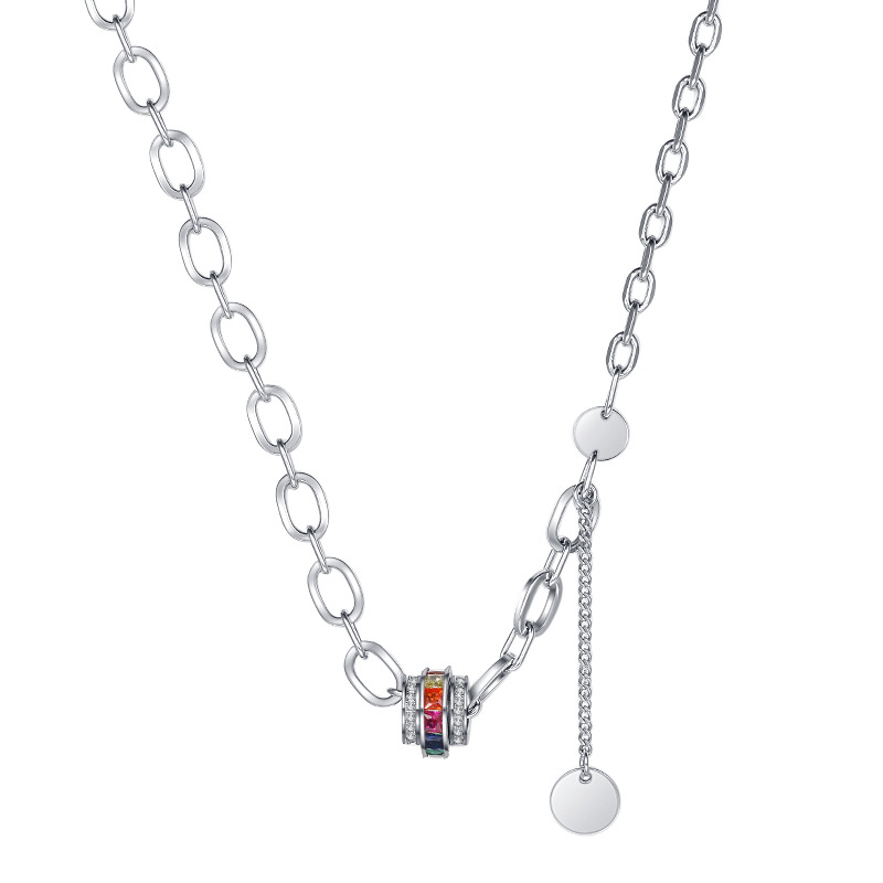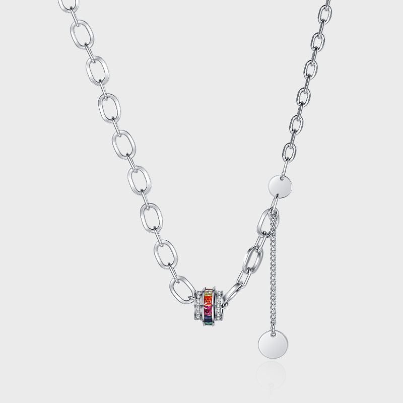 Product: Wholesale 925 Sterling Silver Rainbow Zirconia Wheel Tassel Pendant Necklaces 80200215.