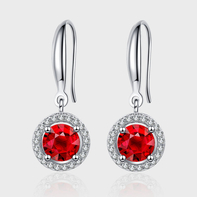 Product: Wholesale 925 Sterling Silver Red Zirconia Birthday Stone Dangle Earrings 50100020.