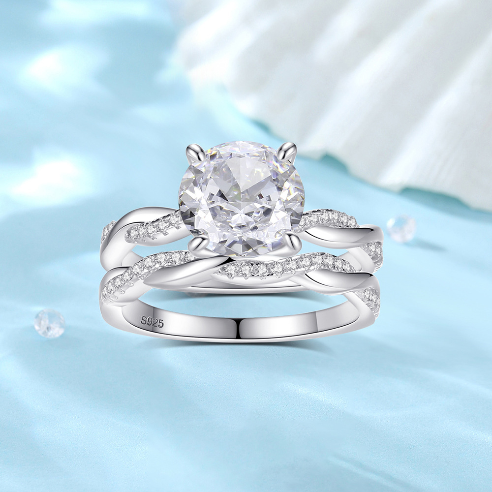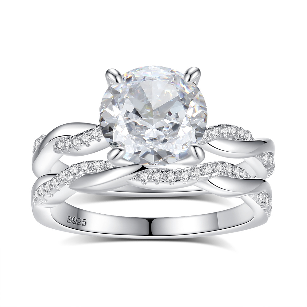 Product: Wholesale 925 Sterling Silver Round High Carbon Diamond Mobius Stack Ring 70200274.