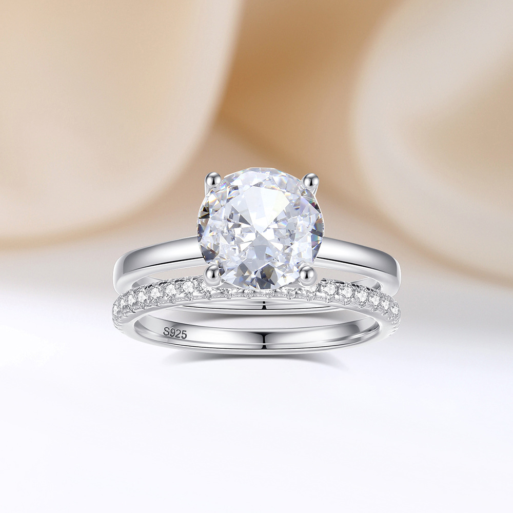 Product: Wholesale 925 Sterling Silver Round High Carbon Diamond Stack Ring 70200269.