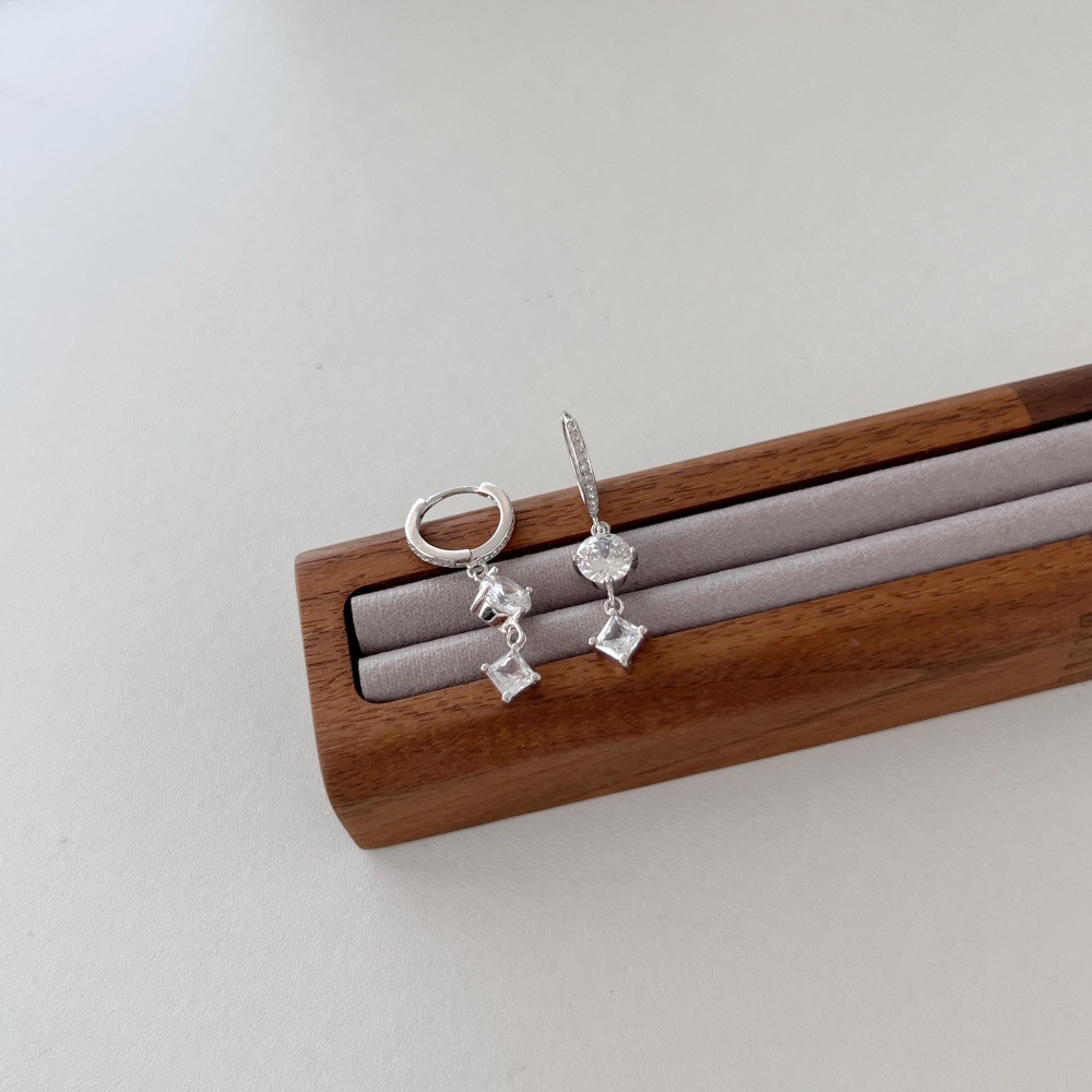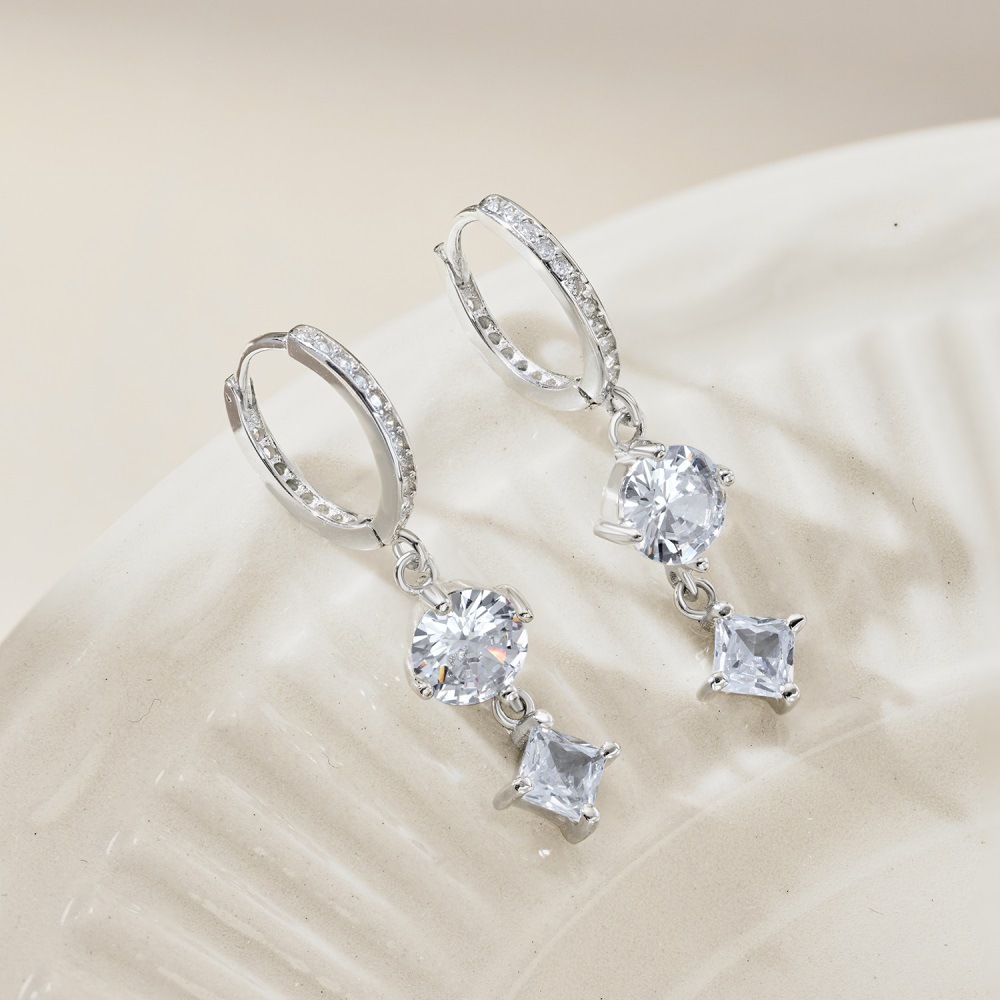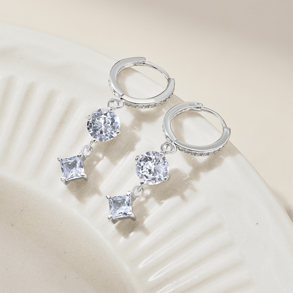 Product: Wholesale 925 Sterling Silver Round Square Zirconia Dangle Charm Hoop Earrings 60300123.