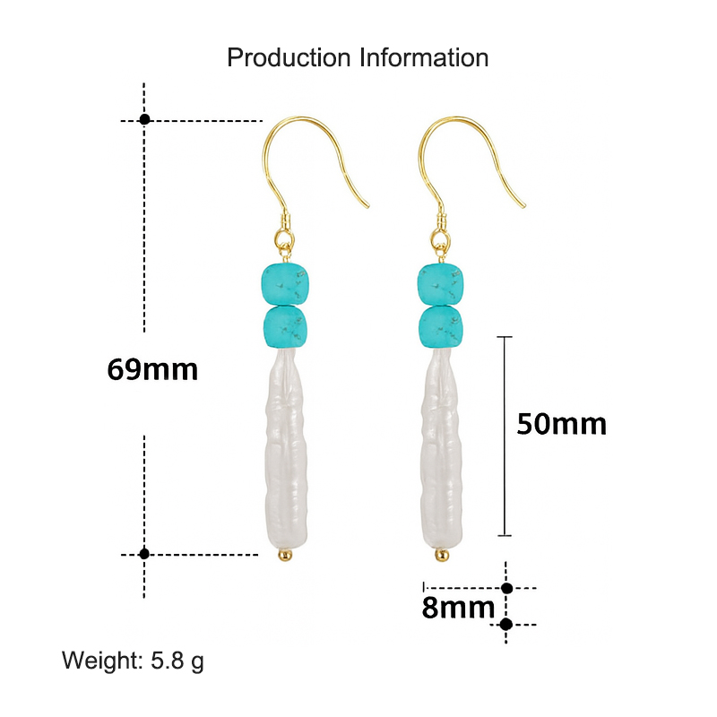 S925 Bohemia Turquoise Fresh Water Pearl Dangle Earring 50100034 - image1S925 Bohemia Turquoise Fresh Water Pearl Dangle Earring 50100034 - image2