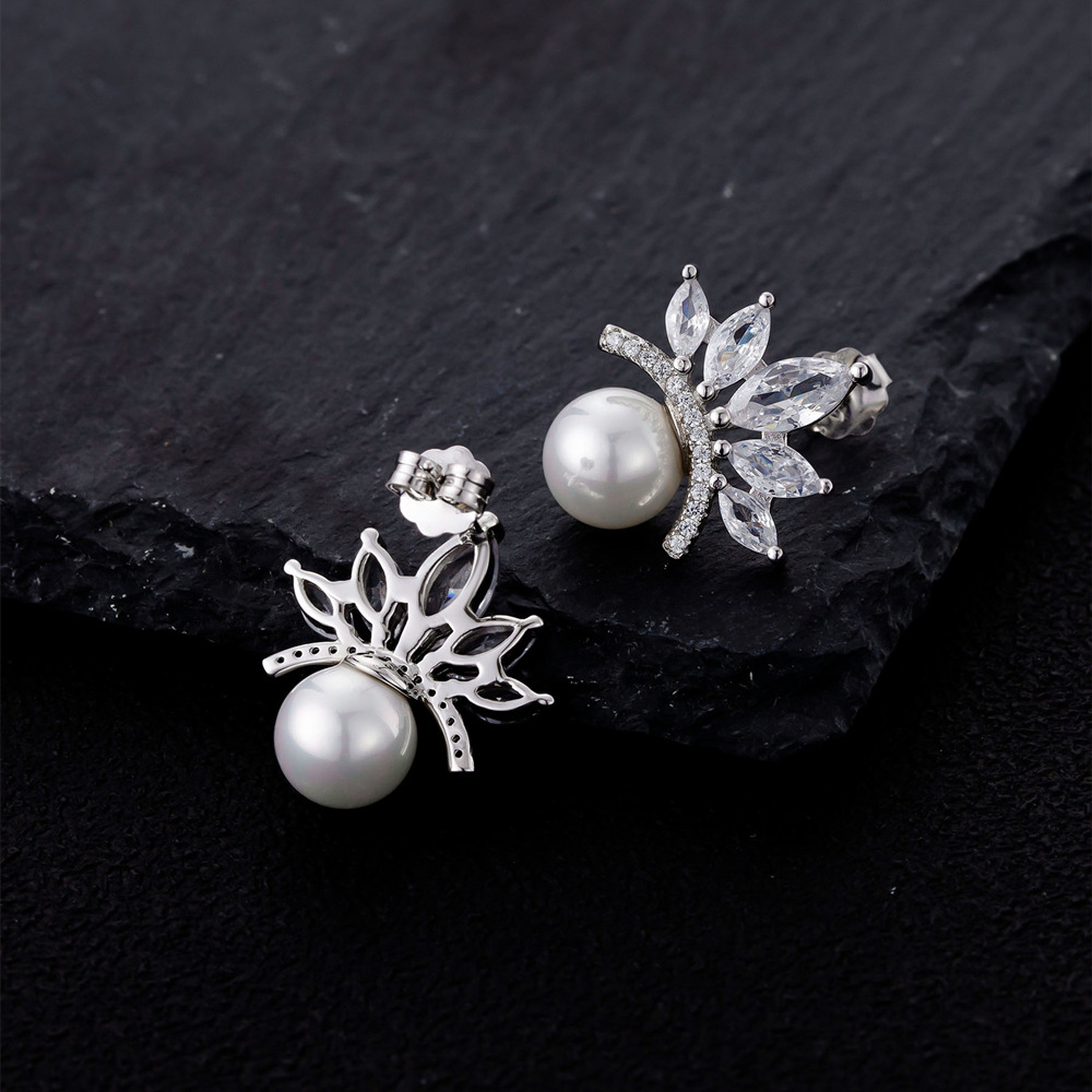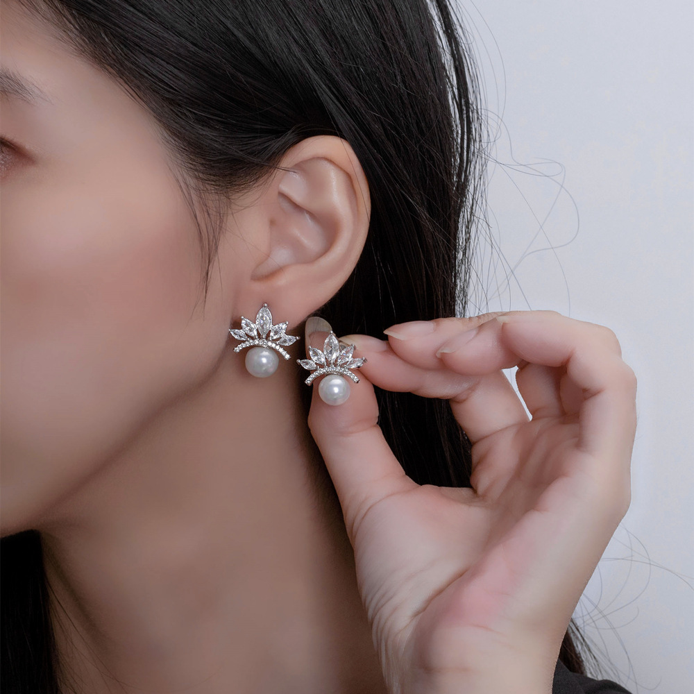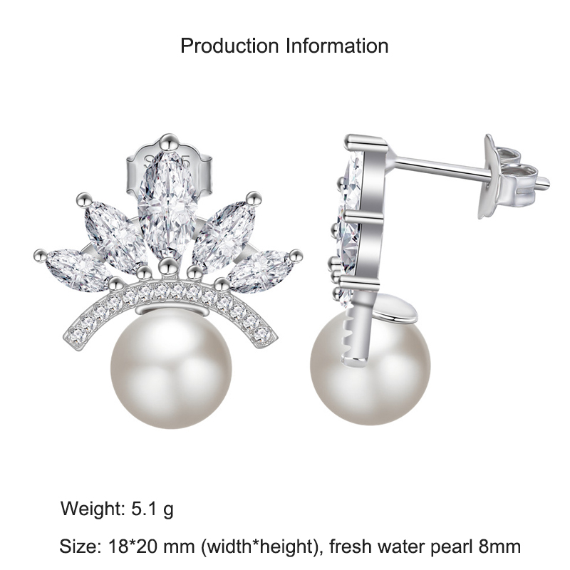 S925 Crown Zirconia Fresh Water Pearl Stud Earring 40500062 - image1S925 Crown Zirconia Fresh Water Pearl Stud Earring 40500062 - image2