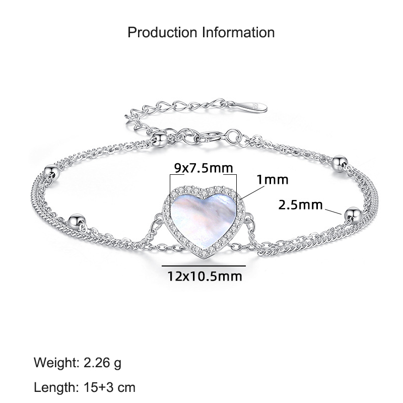 S925 Double Chain Aurora Heart Mother-of-Pearl Bracelet 100100175