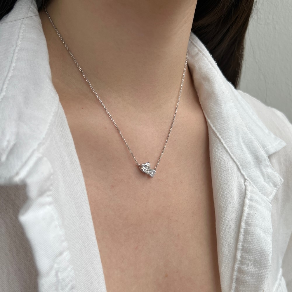 S925 Double Heart Zirconia Necklace 80200335