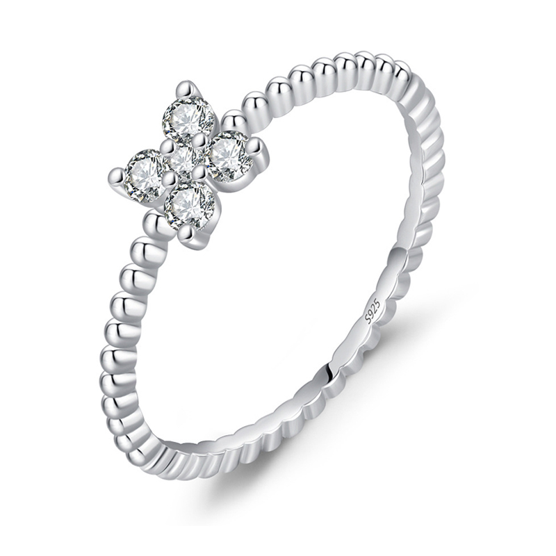 Size 5/6/7/8/9, Ring Band Width 1mm, Main Stone D-VVS1 Moissanite 0.03Ct*4, 0.008Ct*1
