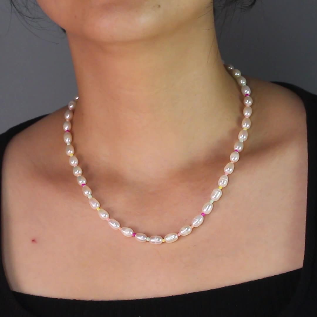 S925 Fresh Water Pearl Colorful Beads Necklace 80100063