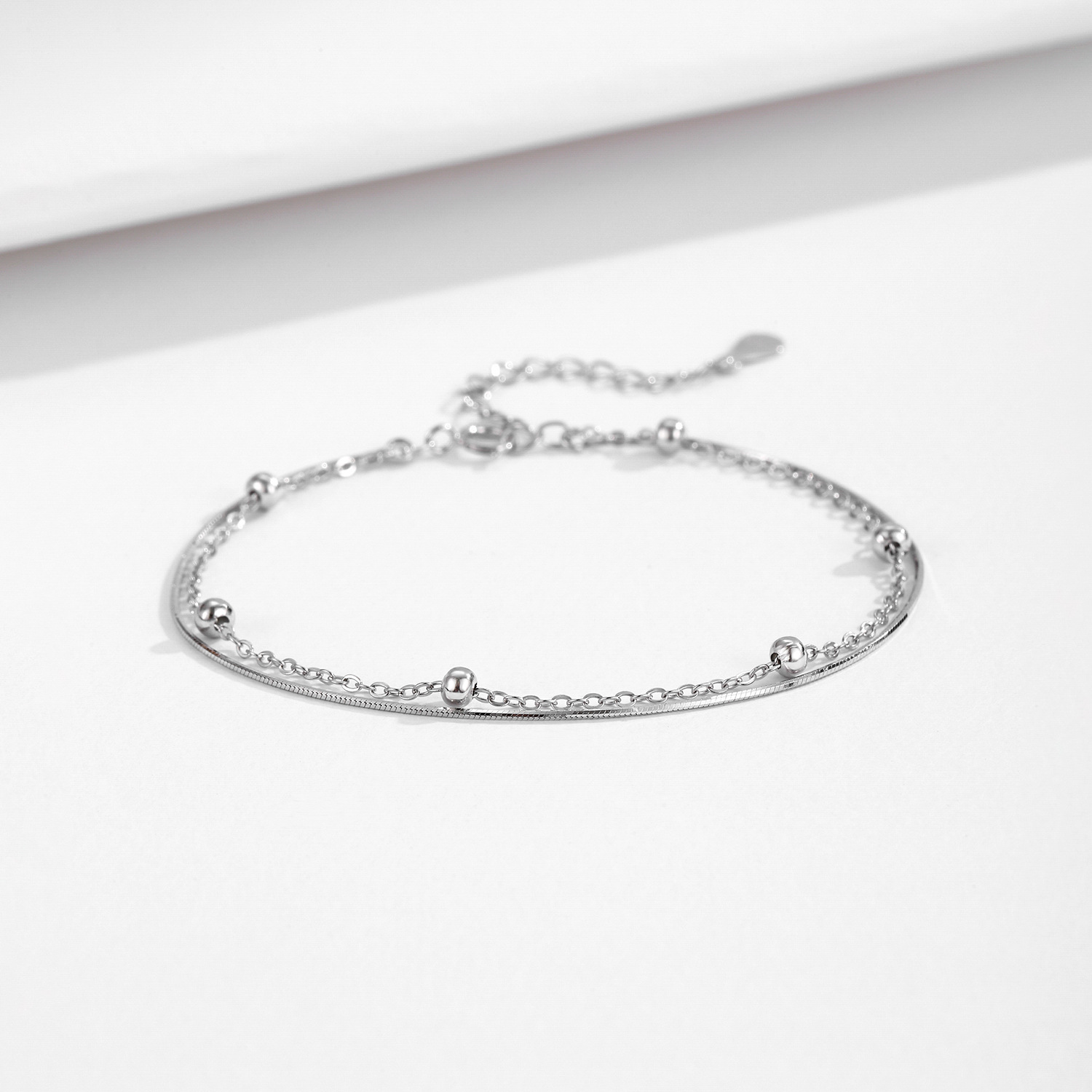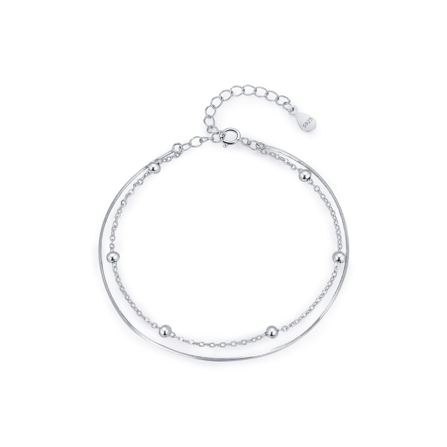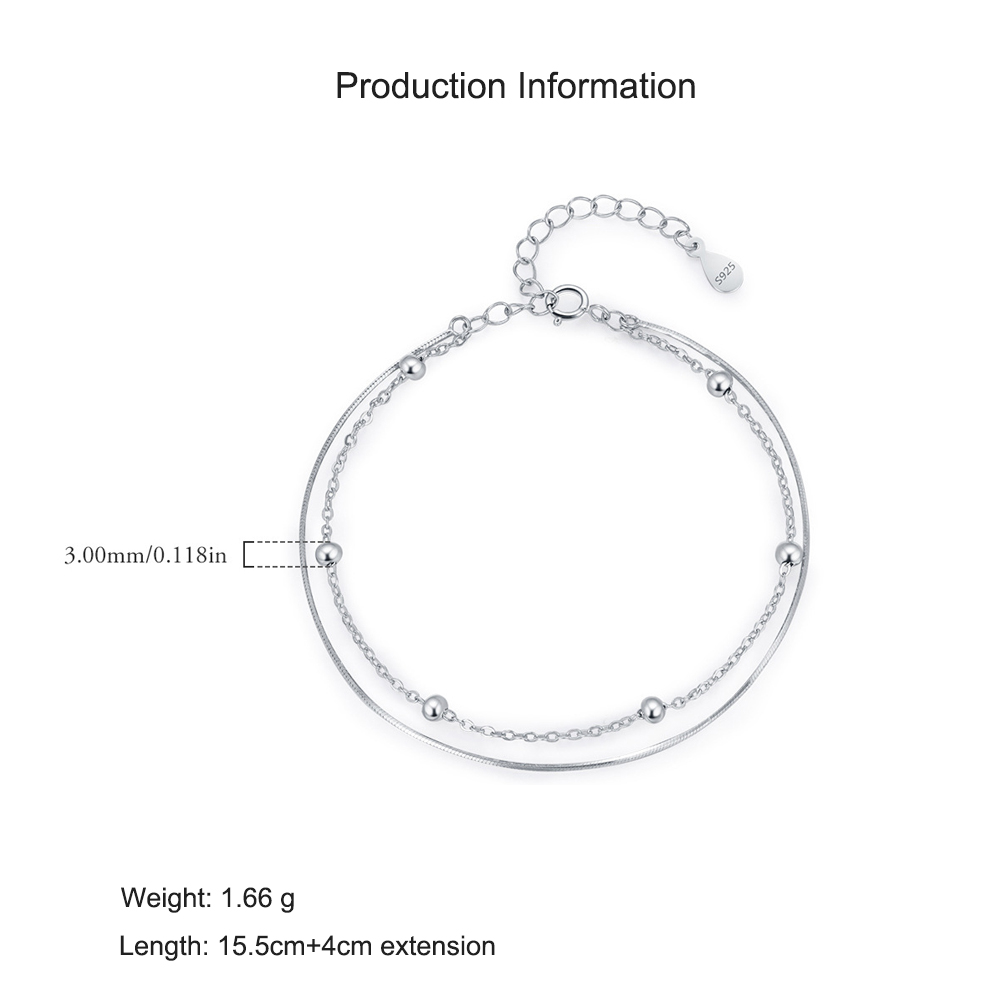 S925 Minimalist Double-Layer Snake Chain Bead Bracelet 100100191