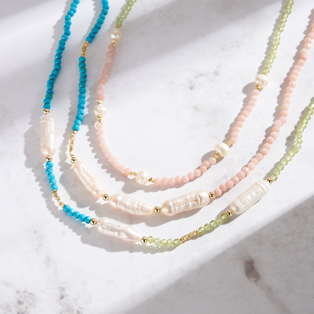 S925 Pink Opal Olivine Fresh Water Pearl Necklace 80100060