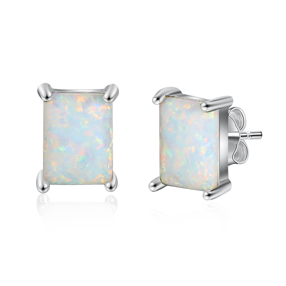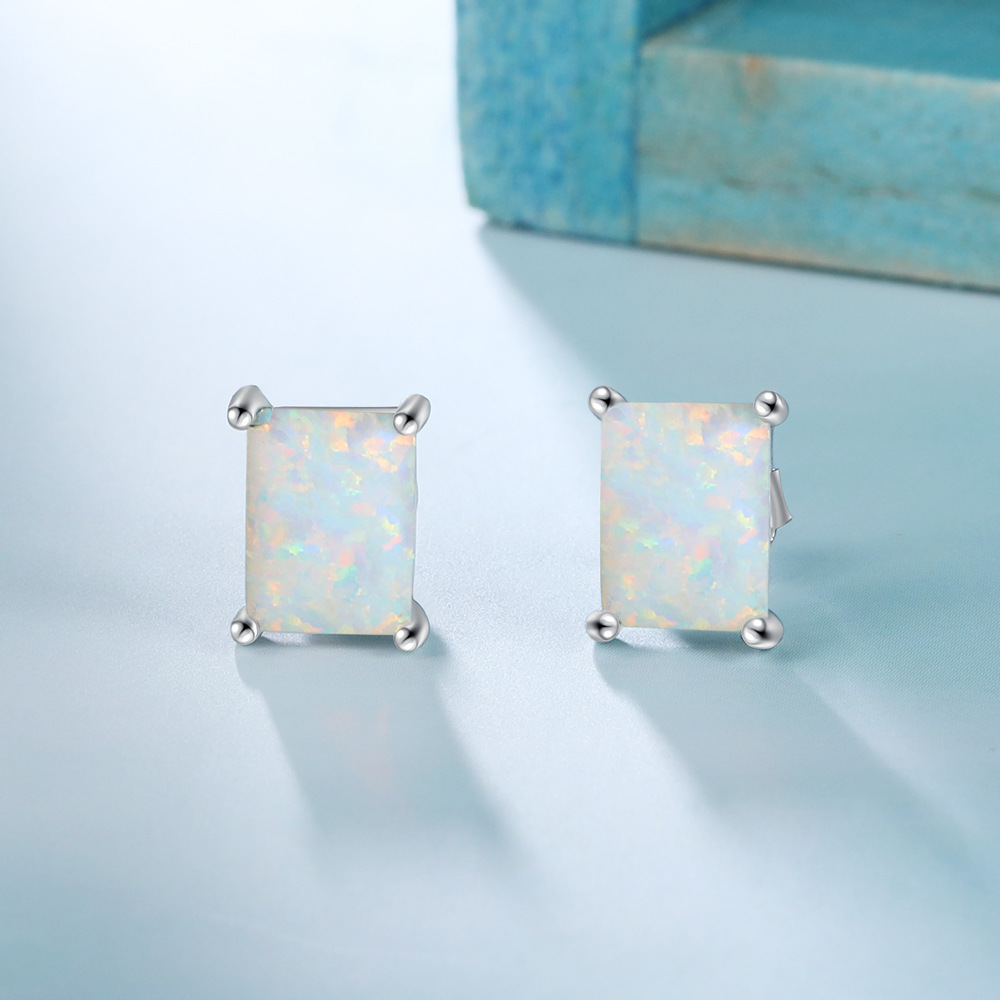 S925 Rectangle White Opal Stud Earring 40700044