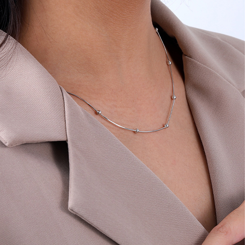 S925 Round Beads Snake Chain Necklace 80100022 - image1S925 Round Beads Snake Chain Necklace 80100022 - image2