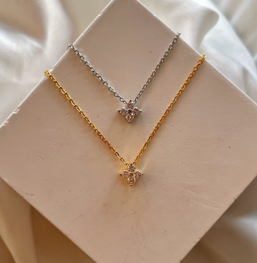 S925 Sparkle Zirconia Clover Flower Necklace 80200311