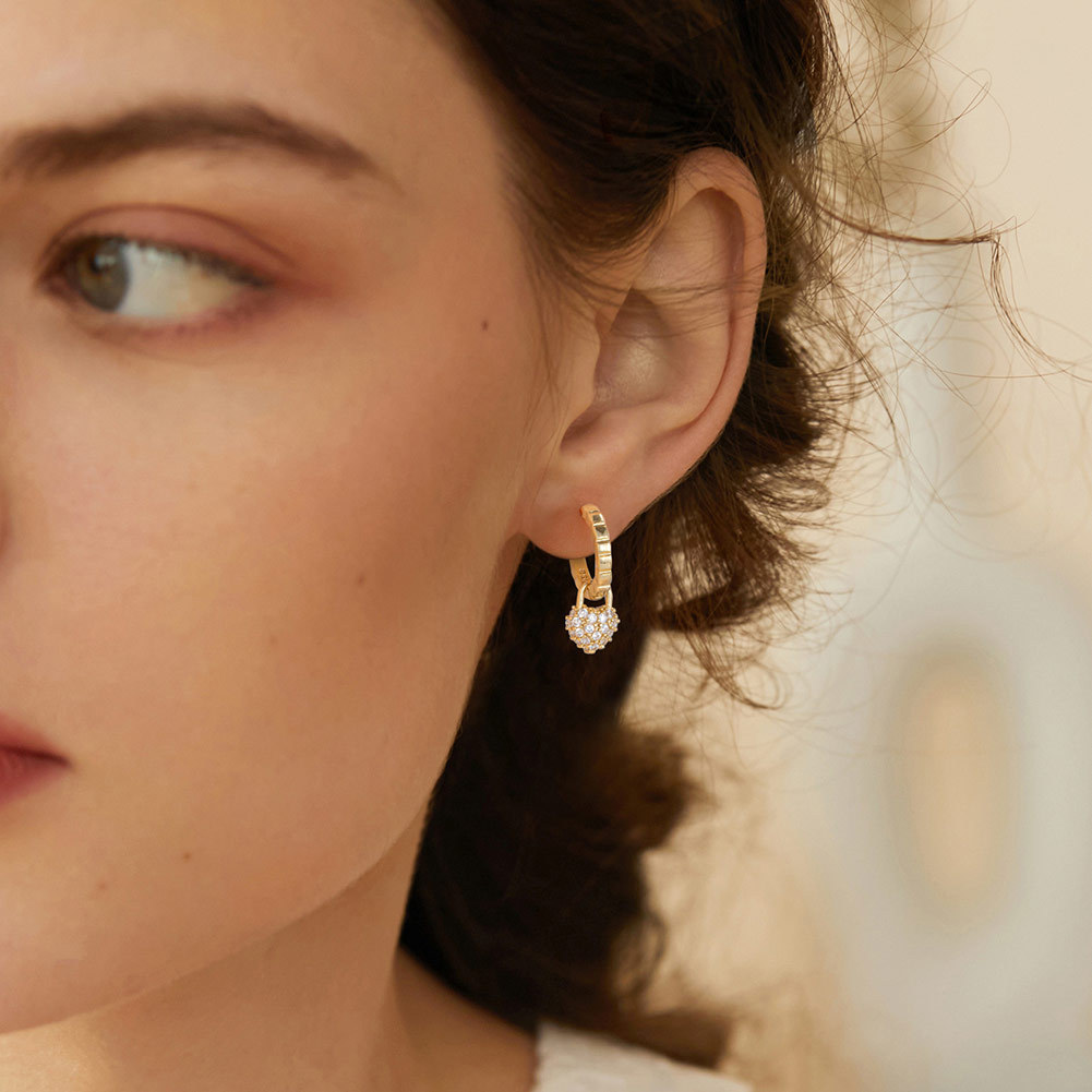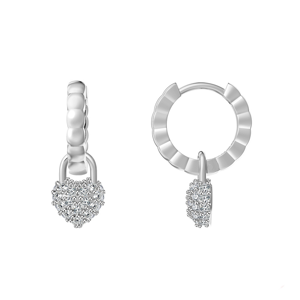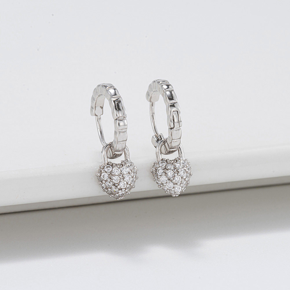 S925 Sweet Zirconia Heart Hoop Charm Earring 60300164