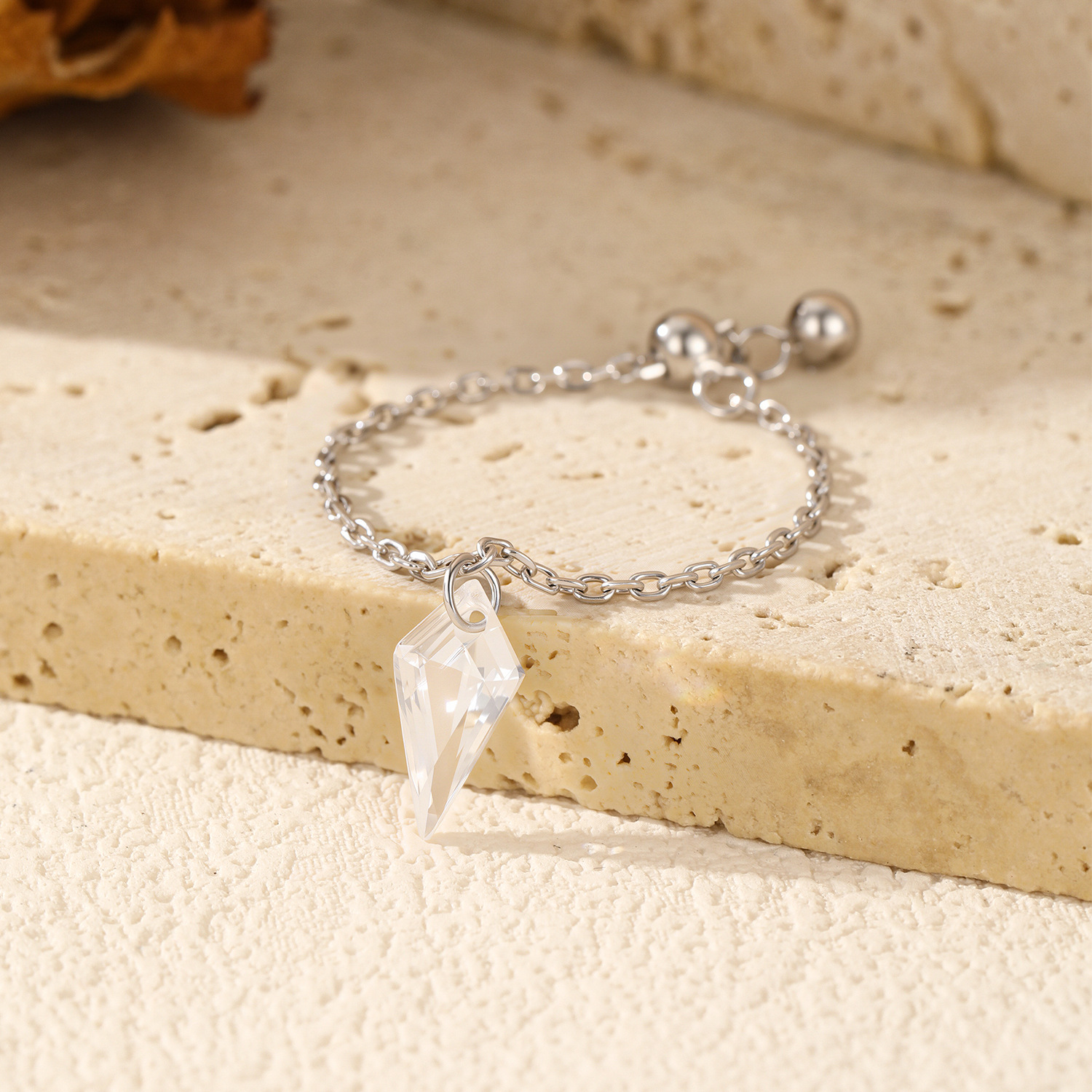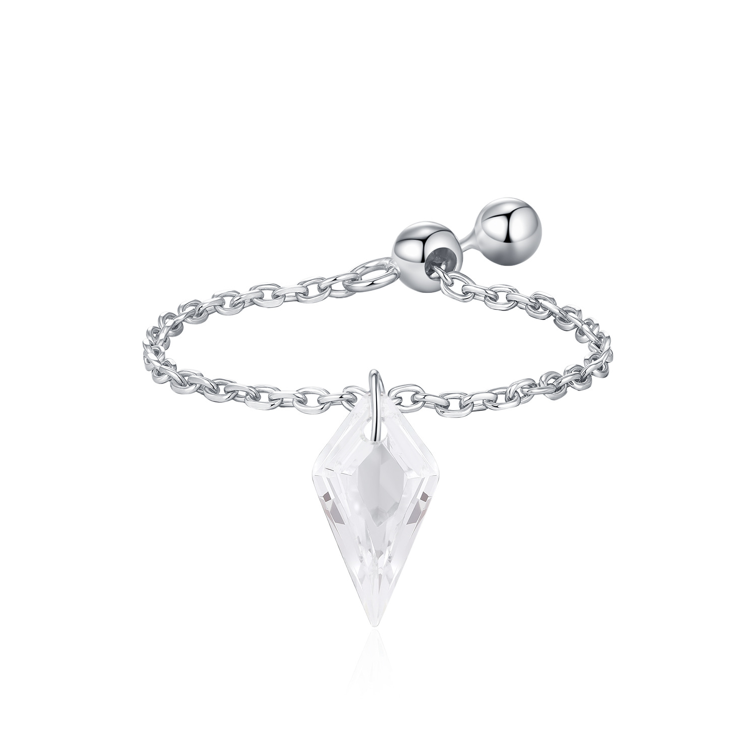 S925 Unique Cone Crystal Chain Ring 70600003