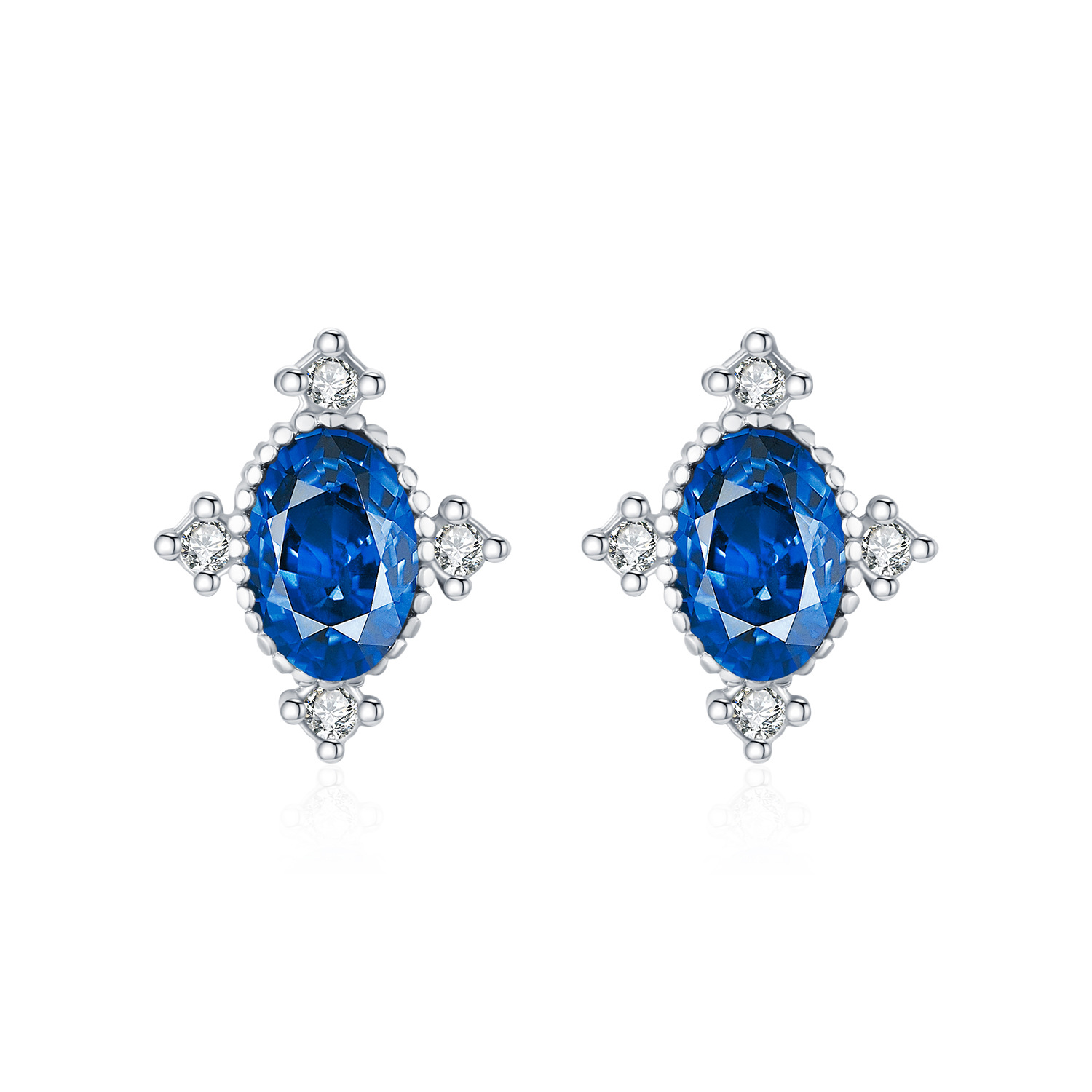S925 Vintage Oval Blue Zirconia Stud Earring 40200532 - image1S925 Vintage Oval Blue Zirconia Stud Earring 40200532 - image2