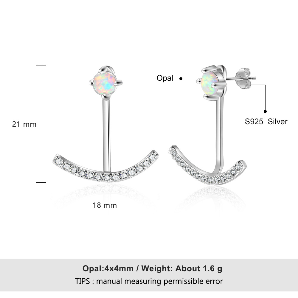 S925 White Opal Smile Zirconia Stud Earring 40700041