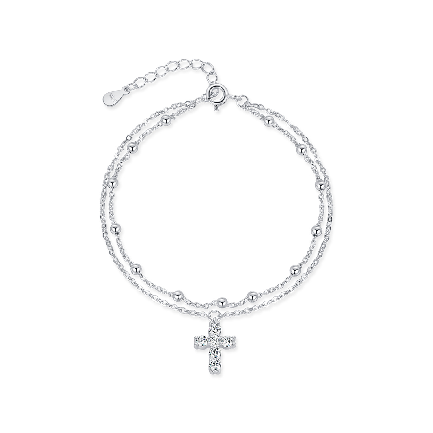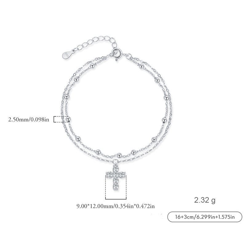 S925 Zirconia Cross Beads Layered Bracelet 100100160