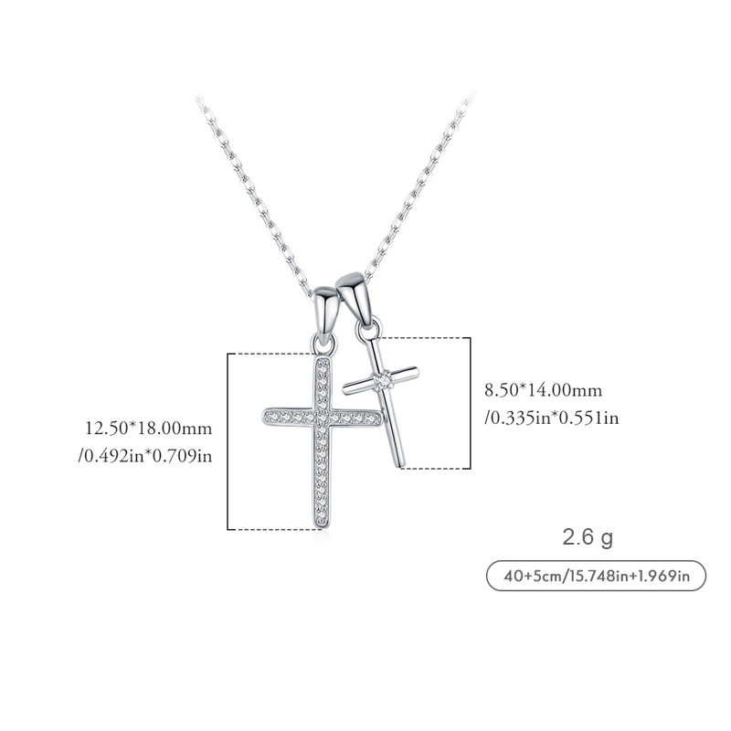 S925 Zirconia Double Cross Pendant Necklace 80200374