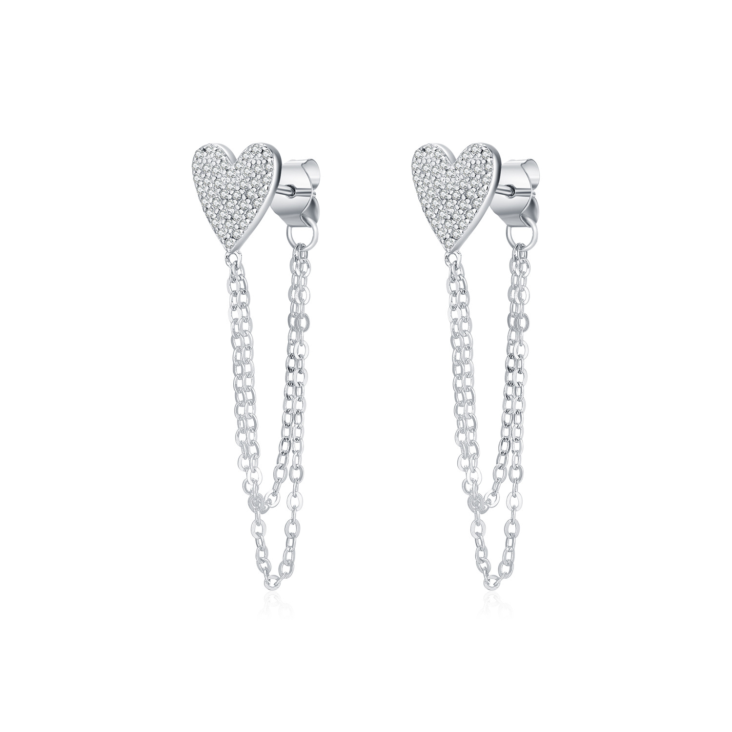 S925 Zirconia Heart Tassel Stud Earring 40200534 - image1S925 Zirconia Heart Tassel Stud Earring 40200534 - image2