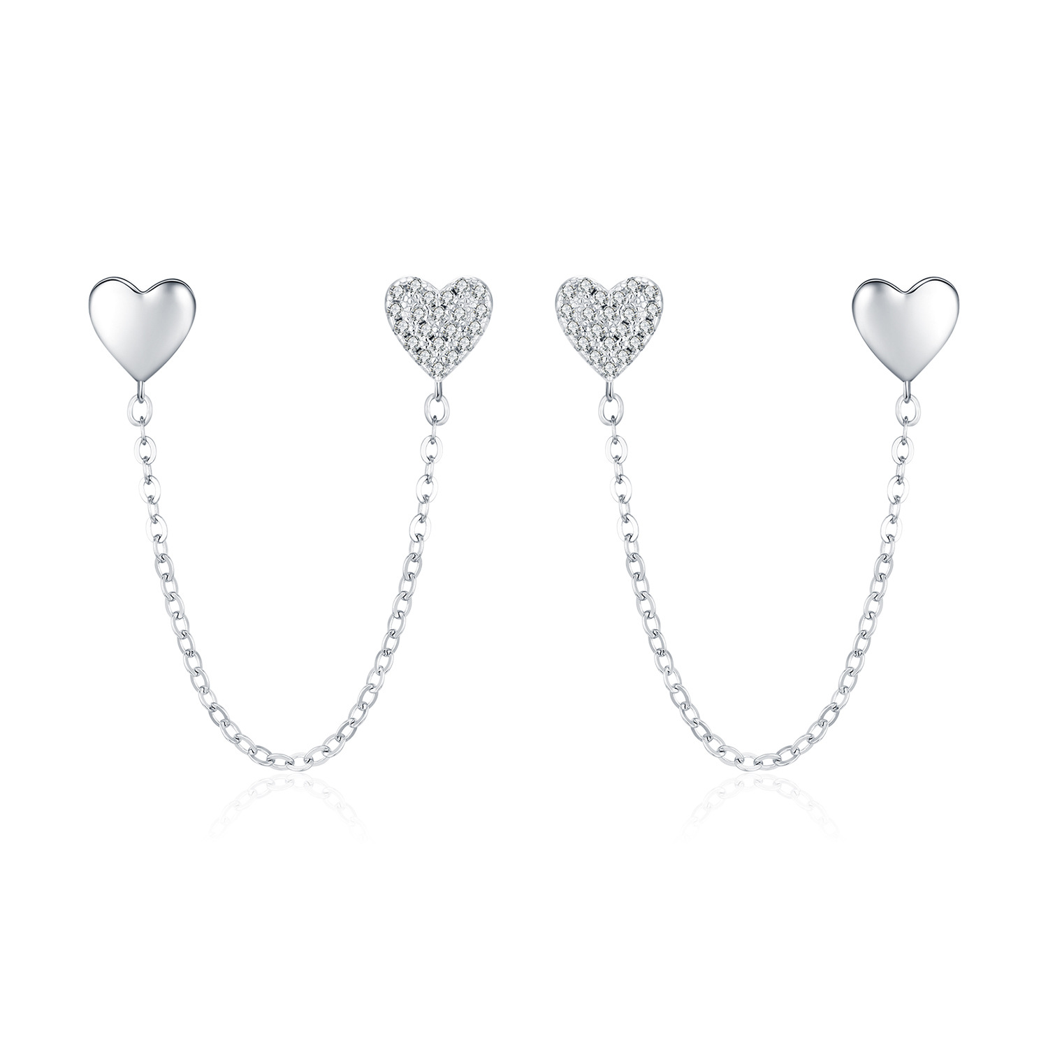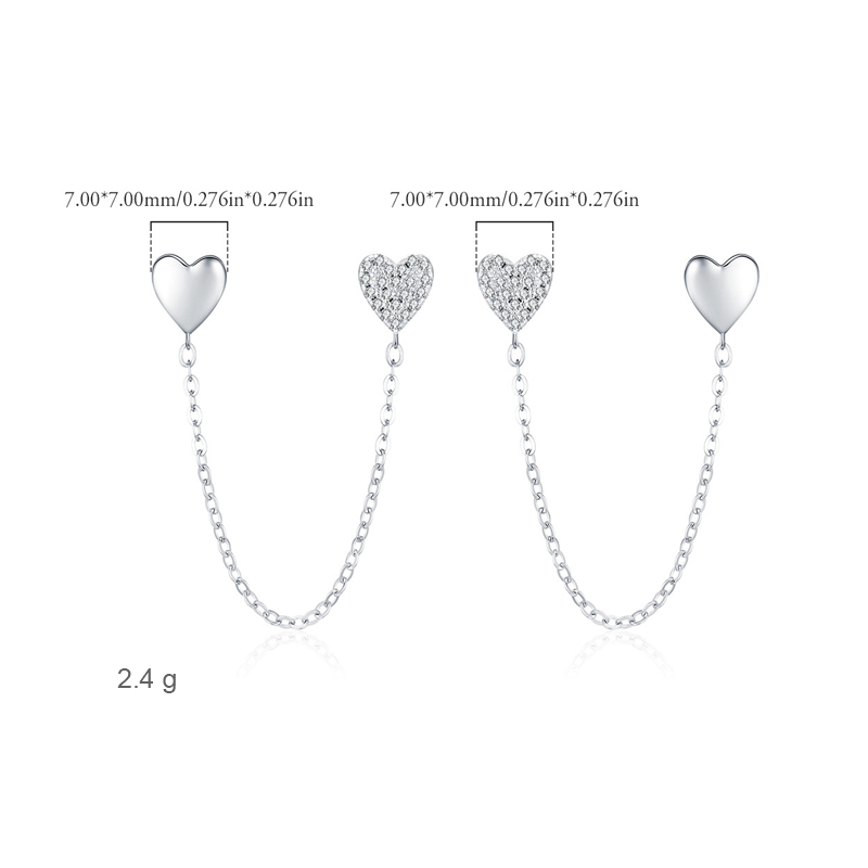 S925 Zirconia Heart Tassel Stud Earring 40200537