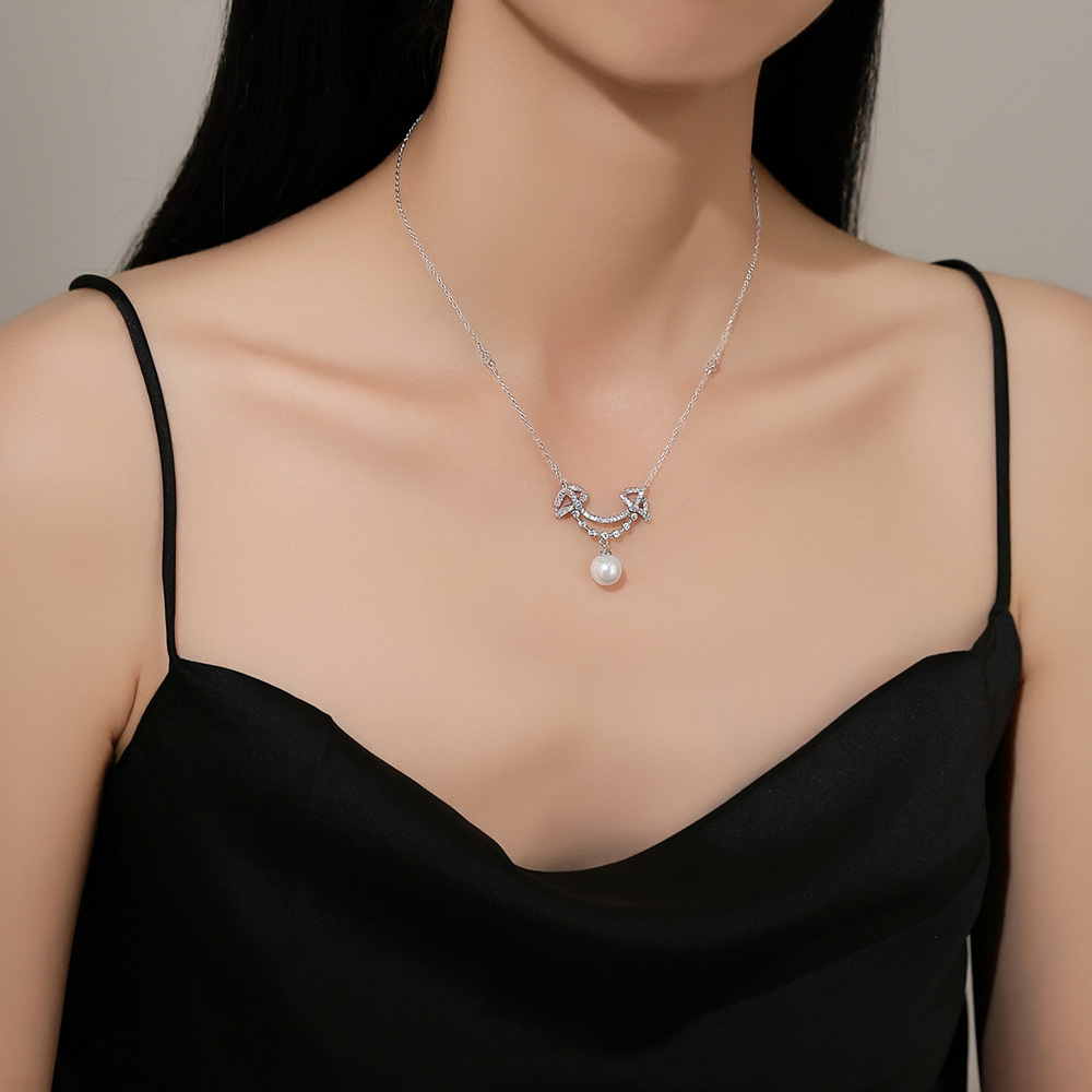 S925 Zirconia Smile Fresh Water Pearl Necklace 80200410