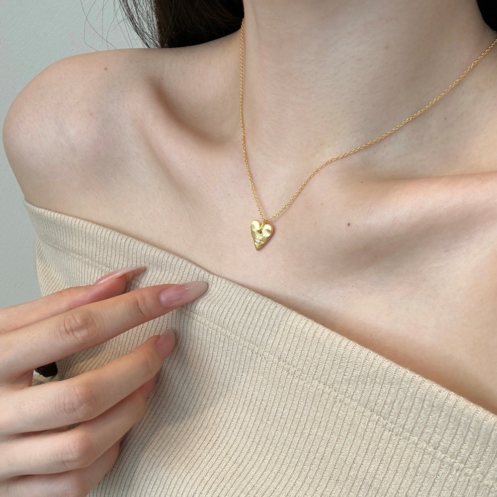 S925 Zirconia Star Brushed Heart Necklace 80200344