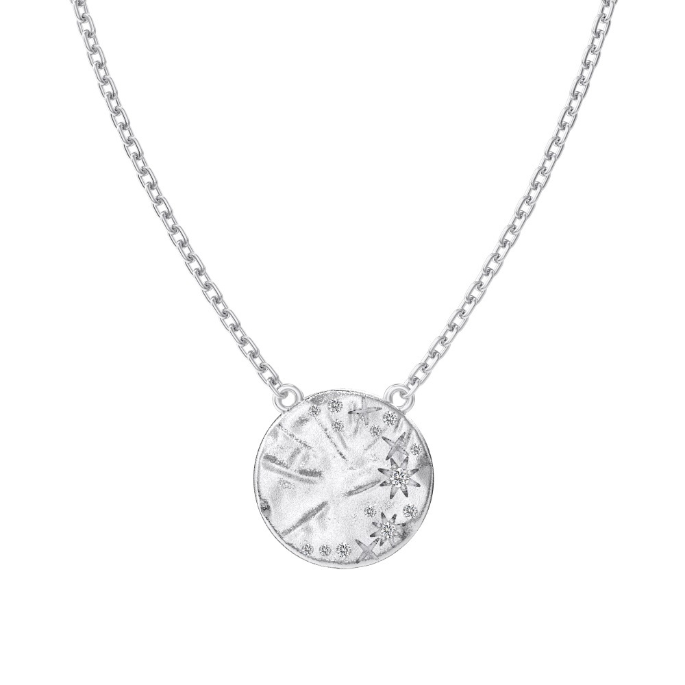 S925 Zirconia Star Brushed Round Pendant Necklace 80200343