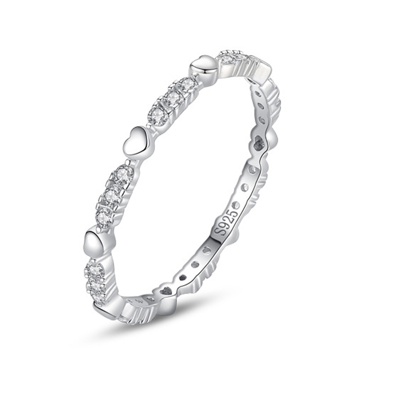 Product: Wholesale 925 Sterling Silver Shiny Heart Zirconia Stackable Band Ring 70100143.