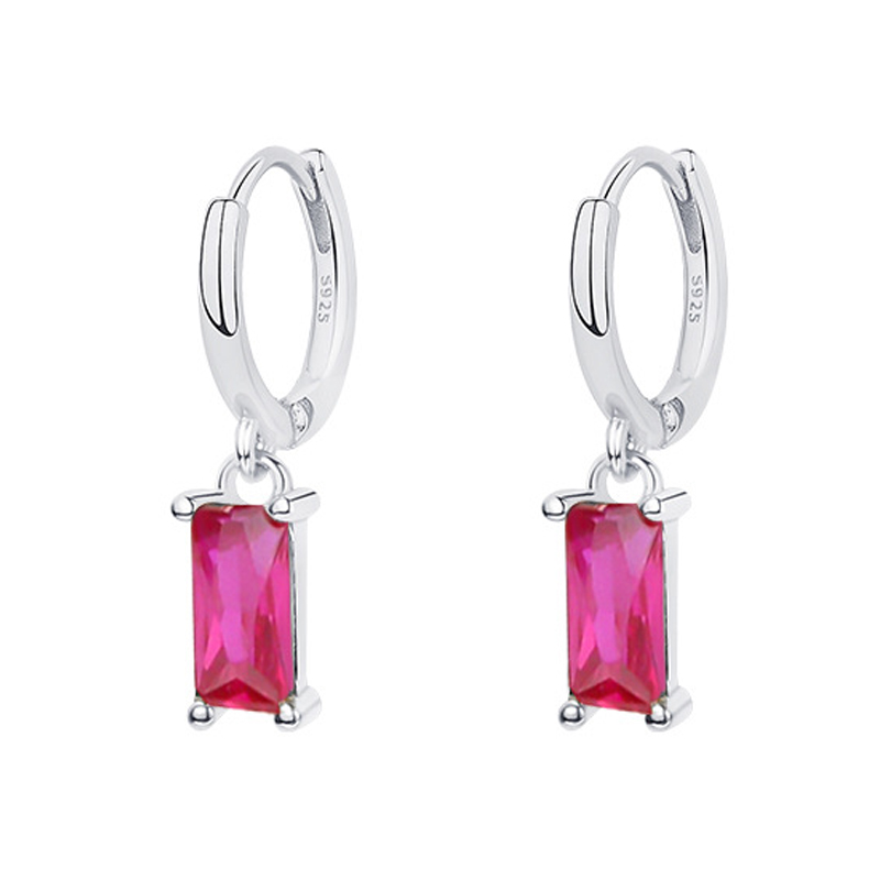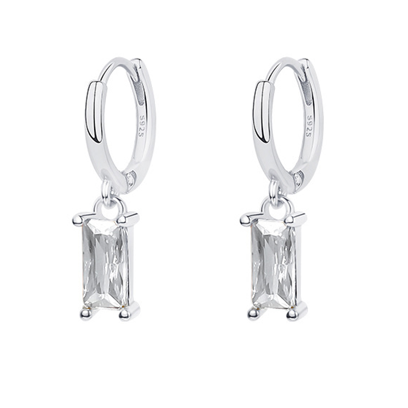 Product: Wholesale 925 Sterling Silver Silver Tone Rectangle Zirconia Charm Hoop Earrings 60300132.