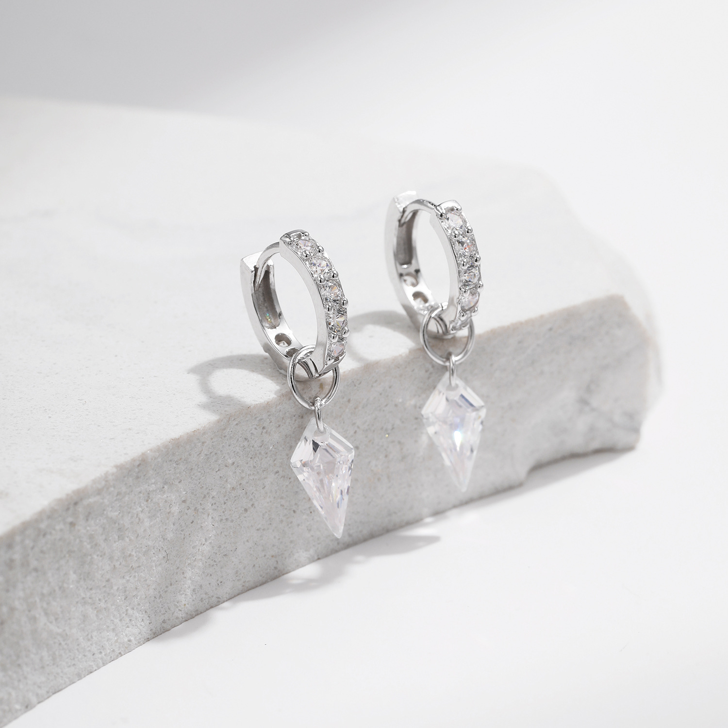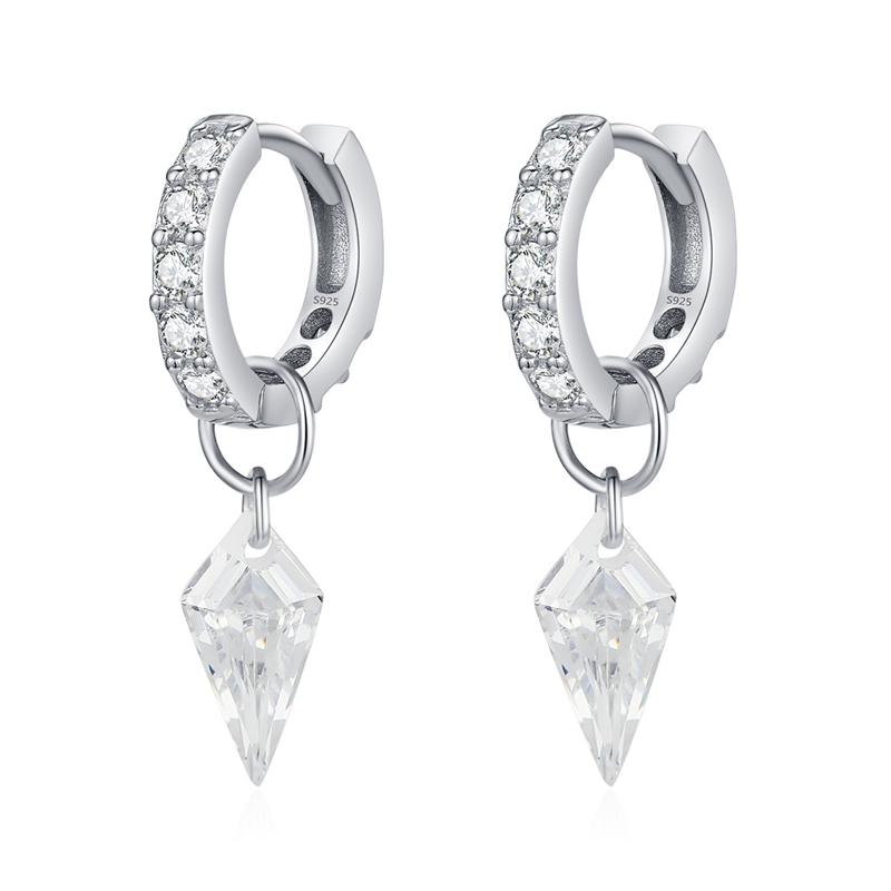 Product: Wholesale 925 Sterling Silver Spark Triangle Pyramid Zirconia Charm Earrings 60300156.