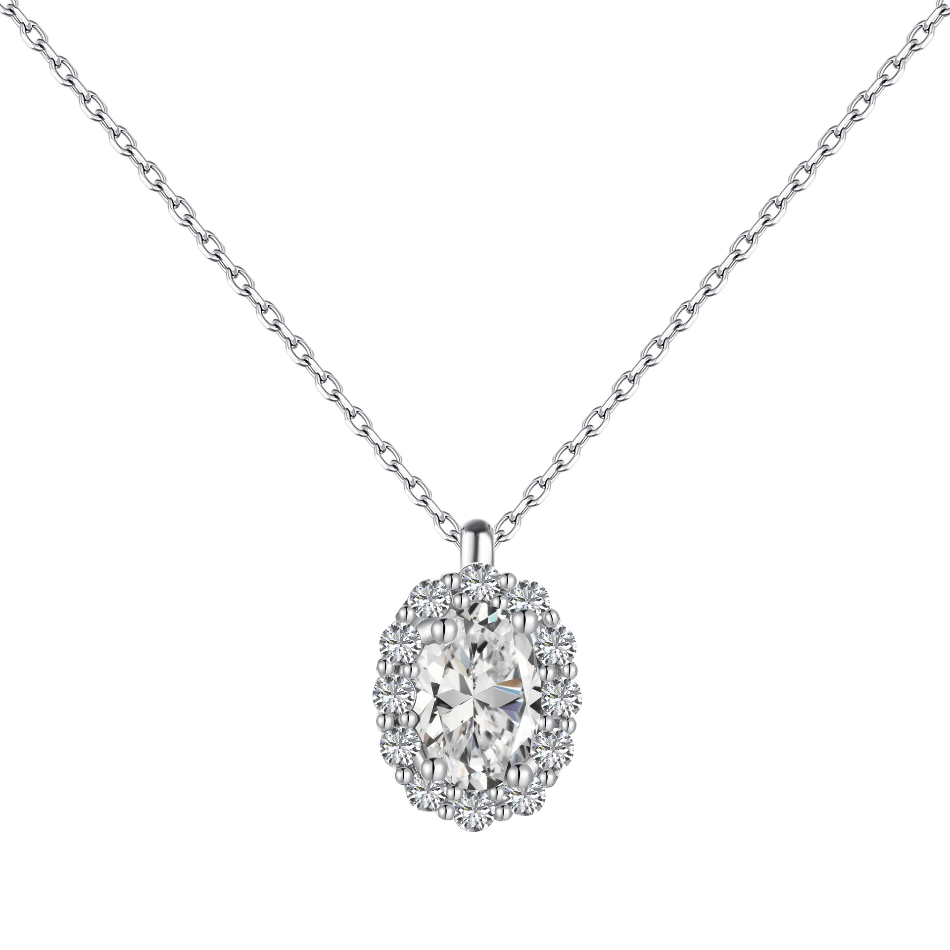 Product: Wholesale 925 Sterling Silver Sparkle Oval Cluster Zirconia Pendant Party Necklace 80200263.