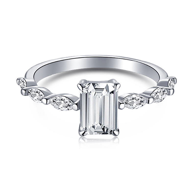 Product: Wholesale 925 Sterling Silver Sparkle Rectangle Zirconia Solitaire Ring 70200081.