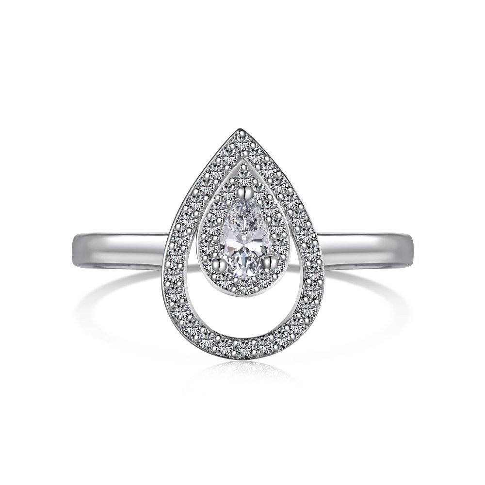 Product: Wholesale 925 Sterling Silver Sparkle Waterdrop Cubic Zirconia Party Ring 70200121.
