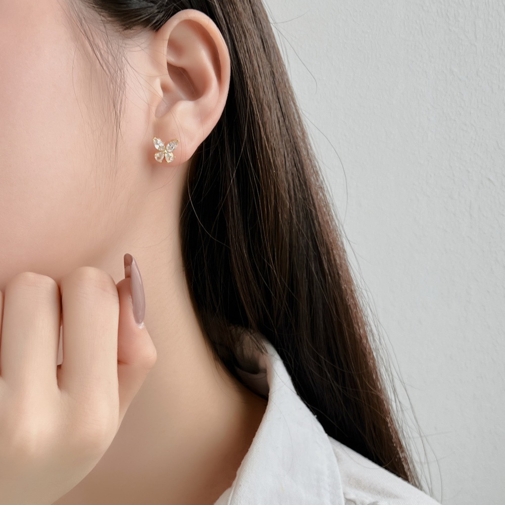 Product: Wholesale 925 Sterling Silver Sparkle Zirconia Butterfly Party Stud Earrings 40200392.