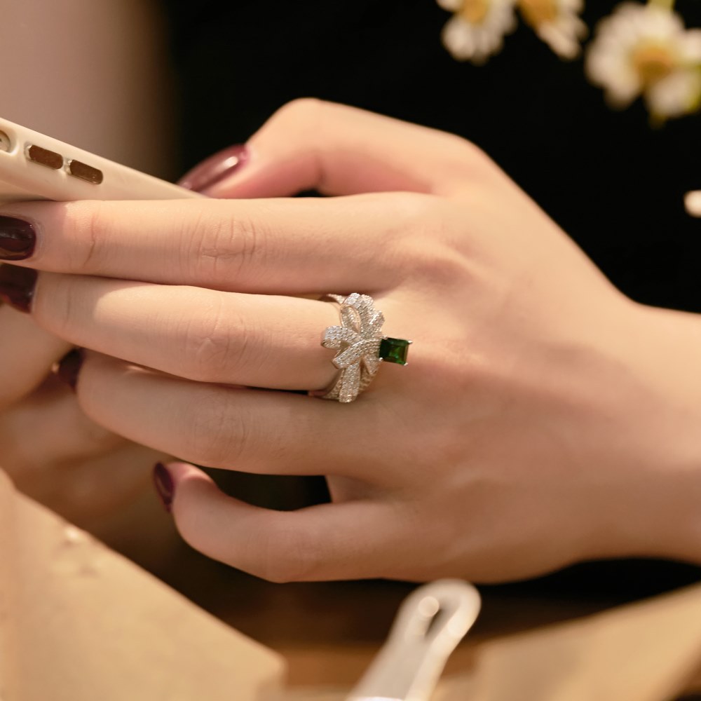 Sqarkle Emerald Cubic Zirconia Bow Ring 70200149