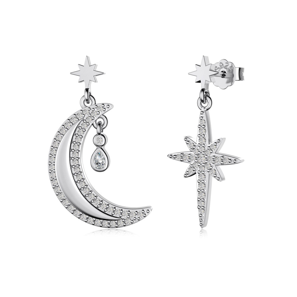 Product: Wholesale 925 Sterling Silver Star Moon Zirconia Stud Earring 40200510.